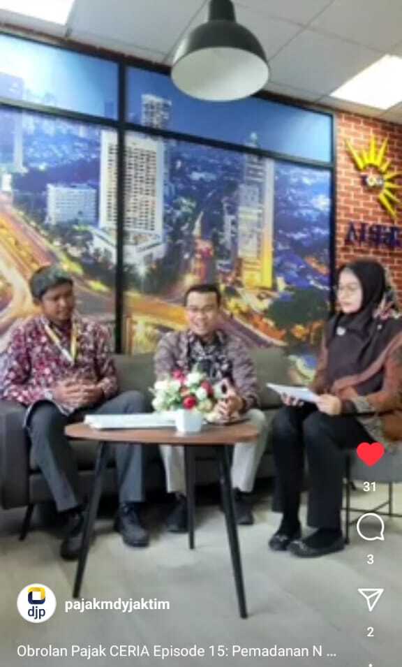 Instagram Live Obrolan Pajak Ceria yang berlangsung selama 30 menit tersebut juga membahas mengenai PENG-19/PJ.09/2023 yang salah satunya adalah layanan pemadanan secara elektronik.