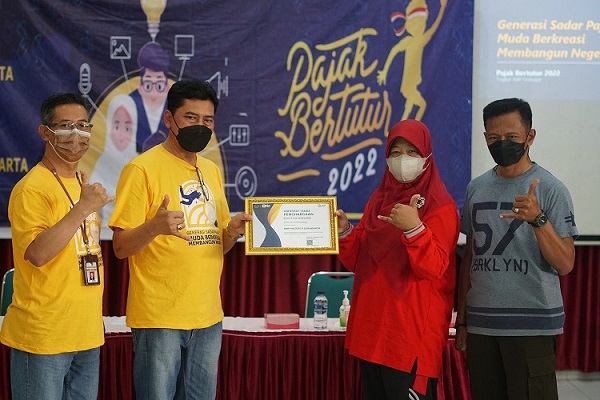 Kantor Pelayanan Pajak (KPP) Madya Surakarta menyelenggarakan Pajak Bertutur 2022 di aula SMP Negeri 9 Surakarta (Jumat, 19/8). Kegiatan ini diselenggarakan secara luring bersama dengan 48 perwakilan siswa-siswi SMP Negeri 9 Surakarta. Kegiatan berlangsung dari pukul 08.00 s.d. 10.00 WIB. Pajak Bertutur tahun ini mengusung tema “Generasi Sadar Pajak, Muda Berkreasi Membangun Negeri” dengan tagline “Pajak Bertutur 2022: Sehari Mengenal, Selamanya Bangga.”