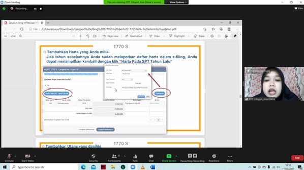 Dibantu oleh perwakilan Account Representative KPP Pratama Cilegon sebagai pemateri, materi yang dibawakan adalah tata cara pelaporan SPT Tahunan secara online baik formulir 1770SS, 1770S, maupun 1770 untuk Wajib Pajak UMKM.