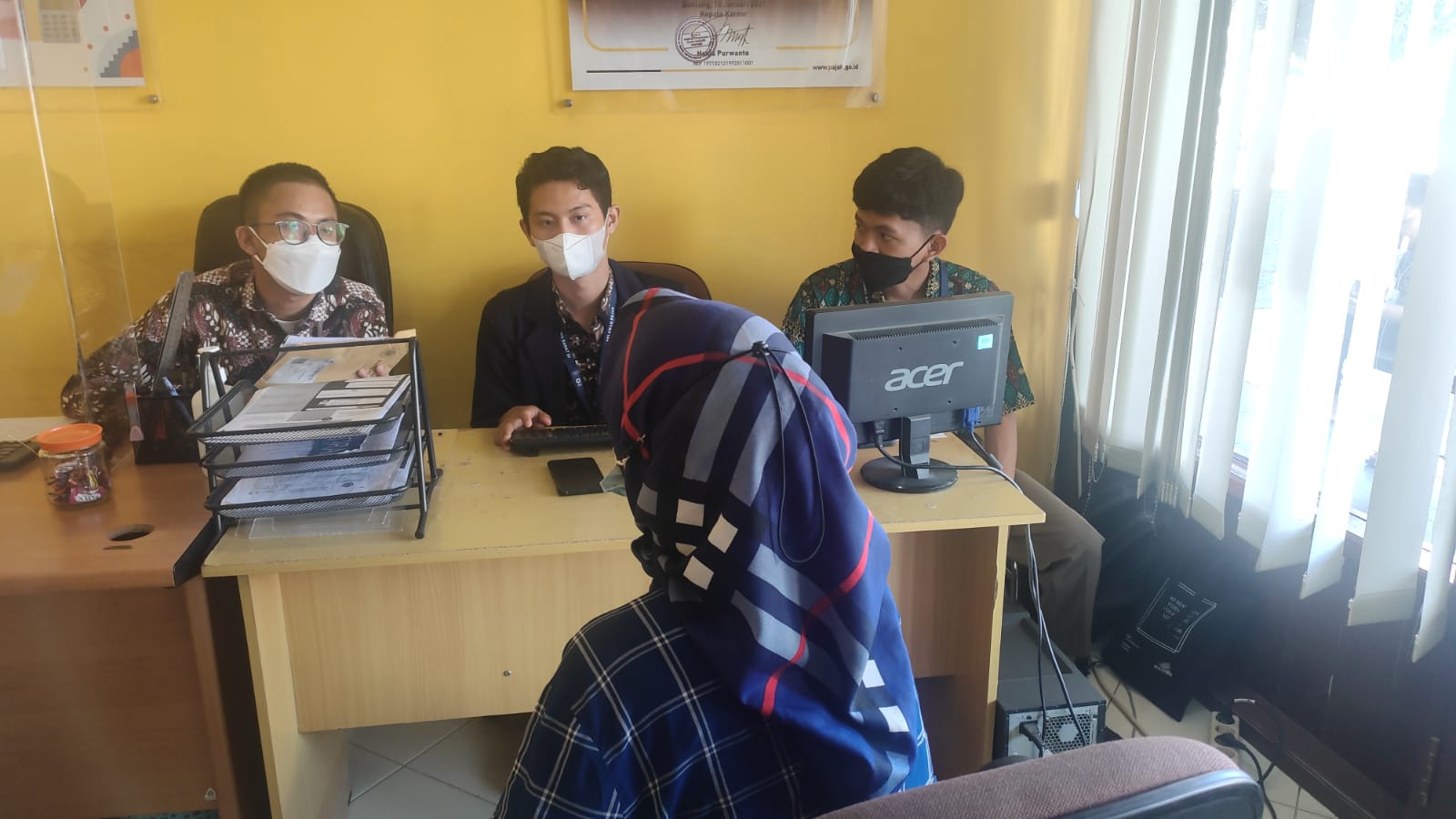 Mahasiswa magang hadir di Kantor Pelayanan Penyuluhan dan Konsultasi Perpajakan (KP2KP) Sangatta membantu asistensi wajib pajak yang ingin mendaftarkan Nomor Pokok Wajib Pajak (NPWP) Orang Pribadi di Kab. Kutai Timur (Jumat, 22/7). Lima mahasiswa magang yang berasal dari Institut Agama Islam (IAI) Tazkia Bogor berasal dari jurusan Akutansi Syariah, Manajemen Keuangan Syariah dan Ekonomi Syariah.