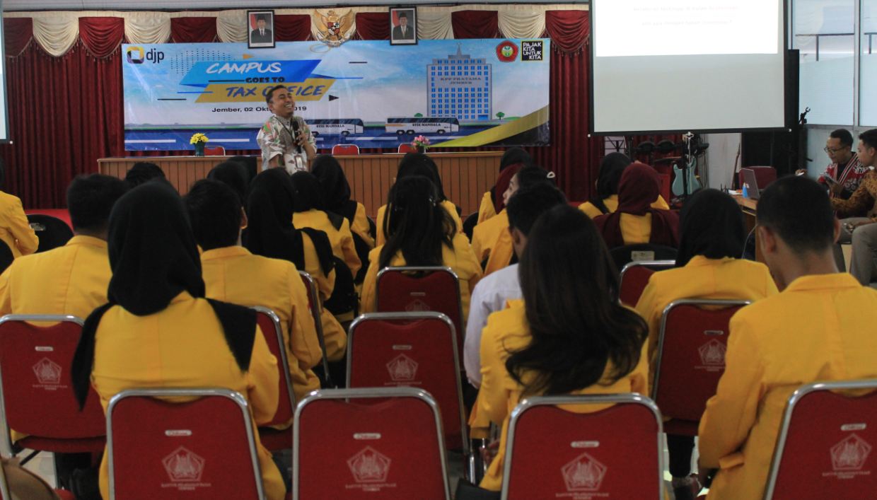 Acara berlangsung menyenangkan, dimulai registrasi peserta, kemudian pembukaan oleh MC, dilanjutkan sambutan dari Kepala KPP Pratama Jember Wisnu Indarto. Dalam sambutannya, Wisnu Indarto menyampaikan bahwa pentingnya pajak di masa sekarang. "Kalian sebagai mahasiswa fakultas ekonomi, adalah merupakan salah satu agen perubahan yang wajib mengetahui keuangan negara, pajak salah satunya. Bantu kami mengedukasi masyarakat akan pentingnya pajak," ajak Wisnu.