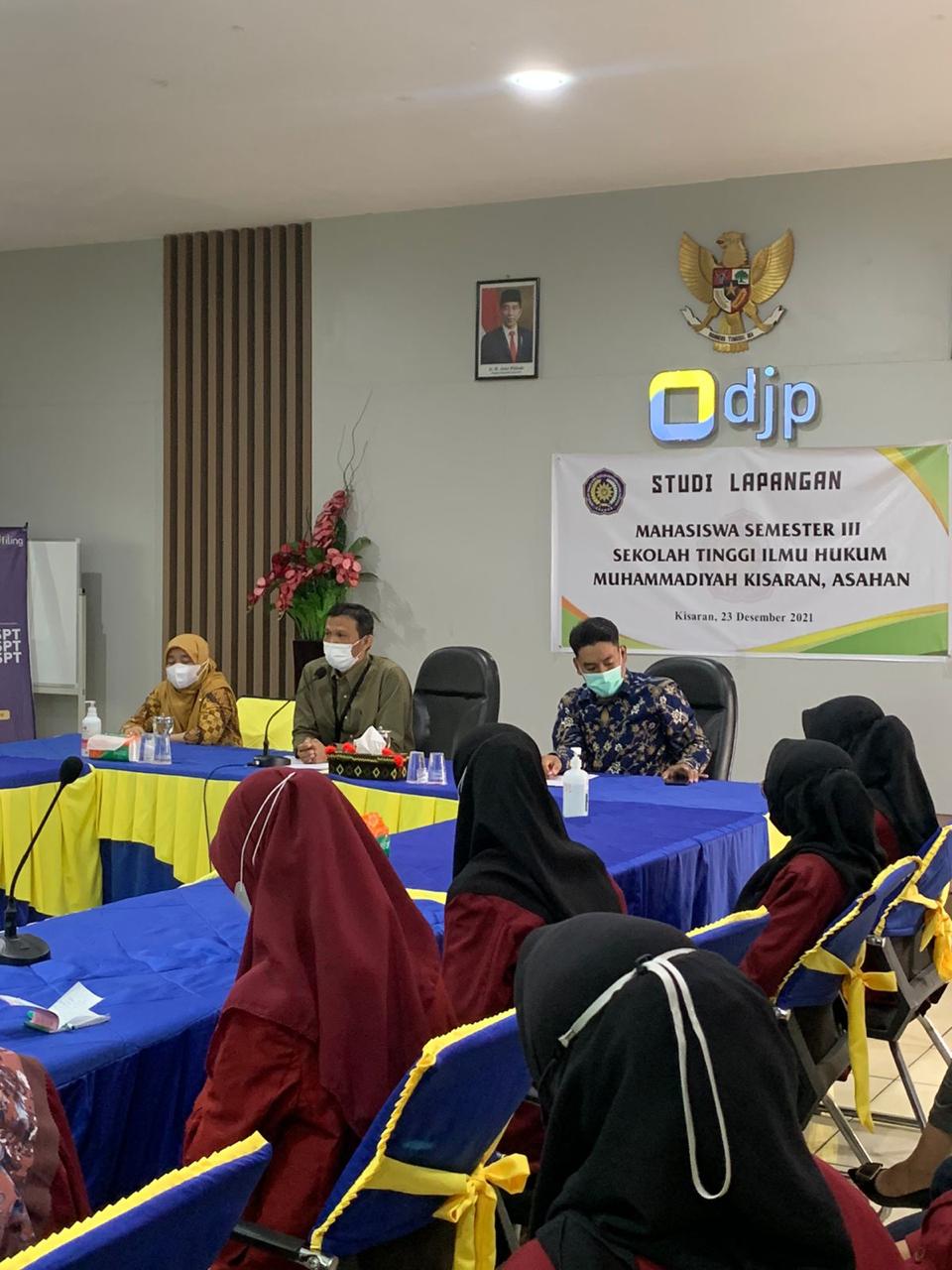 Mahasiswa Sekolah Tinggi Ilmu Hukum Muhammadiyah Asahan (STIHMA) Kisaran melakukan kunjungan ke Kantor Pelayanan Pajak (KPP) Pratama Kisaran di Kabupaten Asahan, Sumatera Utara (Kamis, 23/12). Kegiatan dilakukan dalam rangka studi lapangan terkait mata kuliah perpajakan oleh Mahasiswa Semester III STIHMA Kisaran.