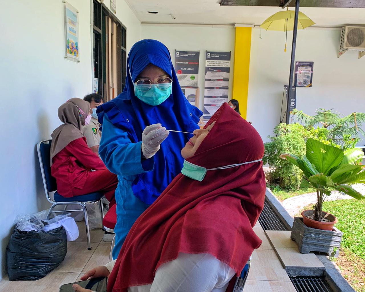 Kantor Pelayanan Pajak (KPP) Pratama Bantaeng melaksanakan kegiatan tes usap antigen bagi seluruh pegawai di area terbuka taman KPP Pratama Bantaeng (Senin, 15/3).