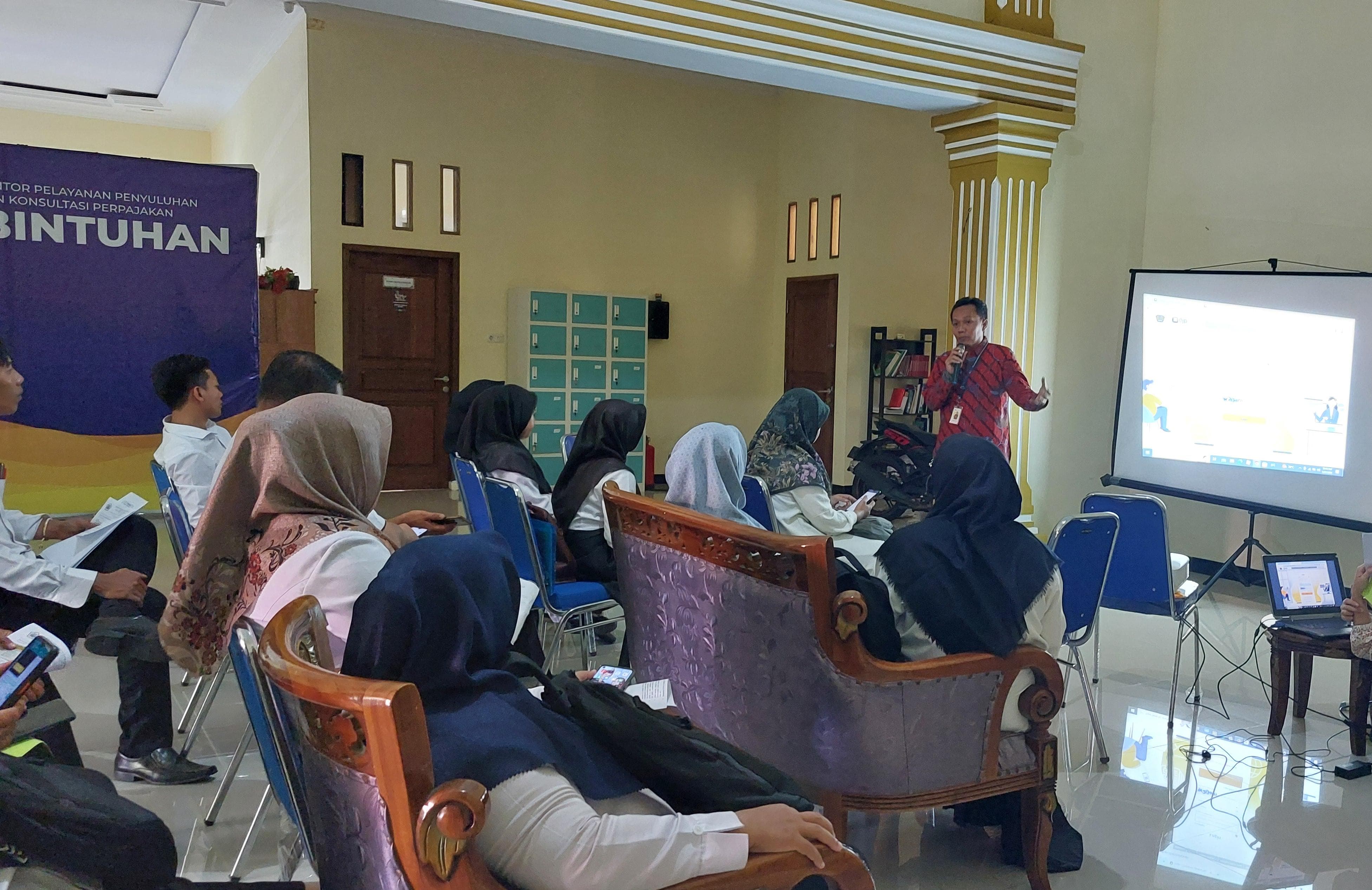 Kantor Pelayanan, Penyuluhan, dan Konsultasi Perpajakan (KP2KP) Bintuhan mengadakan Kelas Pajak dengan tema Asistensi Pelaporan Surat Pemberitahuan Tahunan (SPT) bagi para Pegawai Pemerintah dengan Perjanjian Kerja (P3K) di lingkungan Kementerian Agama (Kemenag) yang dilaksanakan secara langsung di gedung KP2KP Bintuhan di Kompleks Perkantoran Padang Kempas, Kaur, Provinsi Bengkulu (Selasa, 23/1).