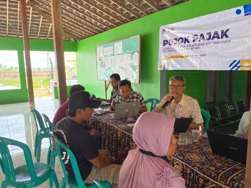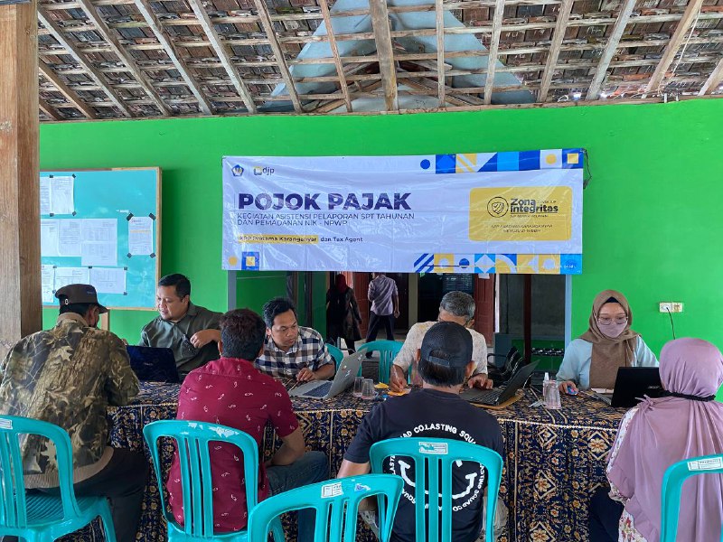 Kantor Pelayanan Pajak (KPP) Karanganyar membuka Pojok Pajak Asistensi Pengisian Surat Pemberitahuan (SPT) Tahunan dan Pemadanan Nomor Induk Kependudukan (NIK) menjadi Nomor Pokok Wajib Pajak (NPWP) di Kantor Balai Desa Karanganyar, Kecamatan Sambungmacan, Kabupaten Sragen (Selasa, 28/02). Pojok pajak dibuka pada pukul 09.00 WIB dan diakhiri pukul 13.00 WIB.