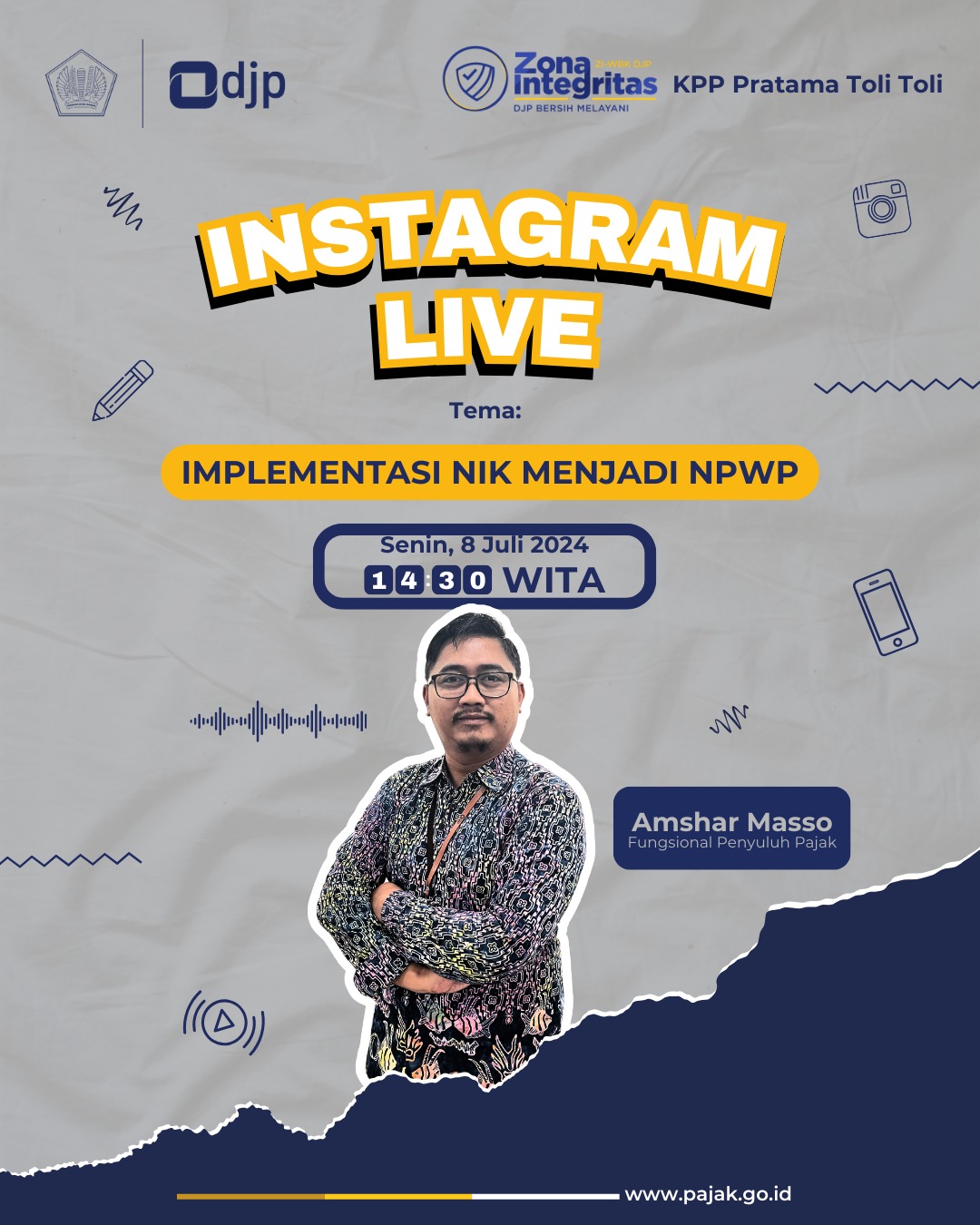 Kantor Pelayanan Pajak (KPP) Pratama Tolitoli menggelar Kelas Pajak secara daring melalui Siaran Langsung Instagram @pajaktolitoli. Pengambilan siaran langsung ini bertempat di Ruang Studio KPP Pratama Tolitoli, Sulawesi Tengah (Senin, 8/7). Kegiatan dimulai pada pukul 14.30 WITA dan Amshar Masso, Fungsional Penyuluh Pajak, berperan sebagai pemateri.