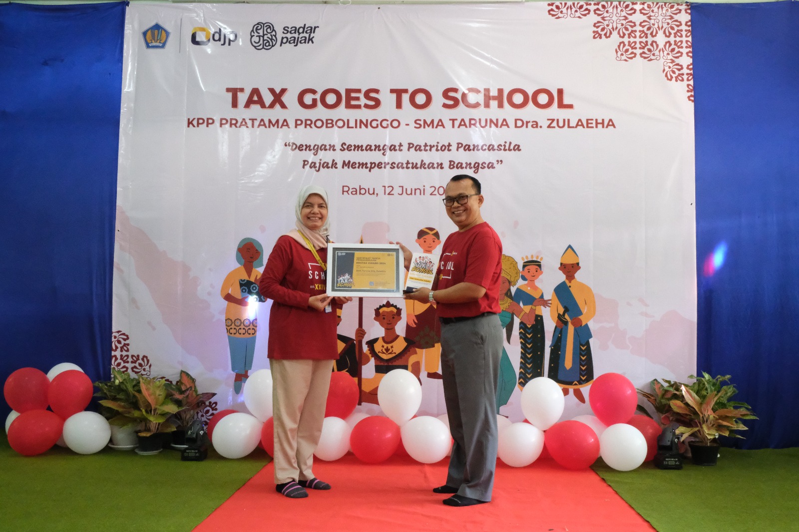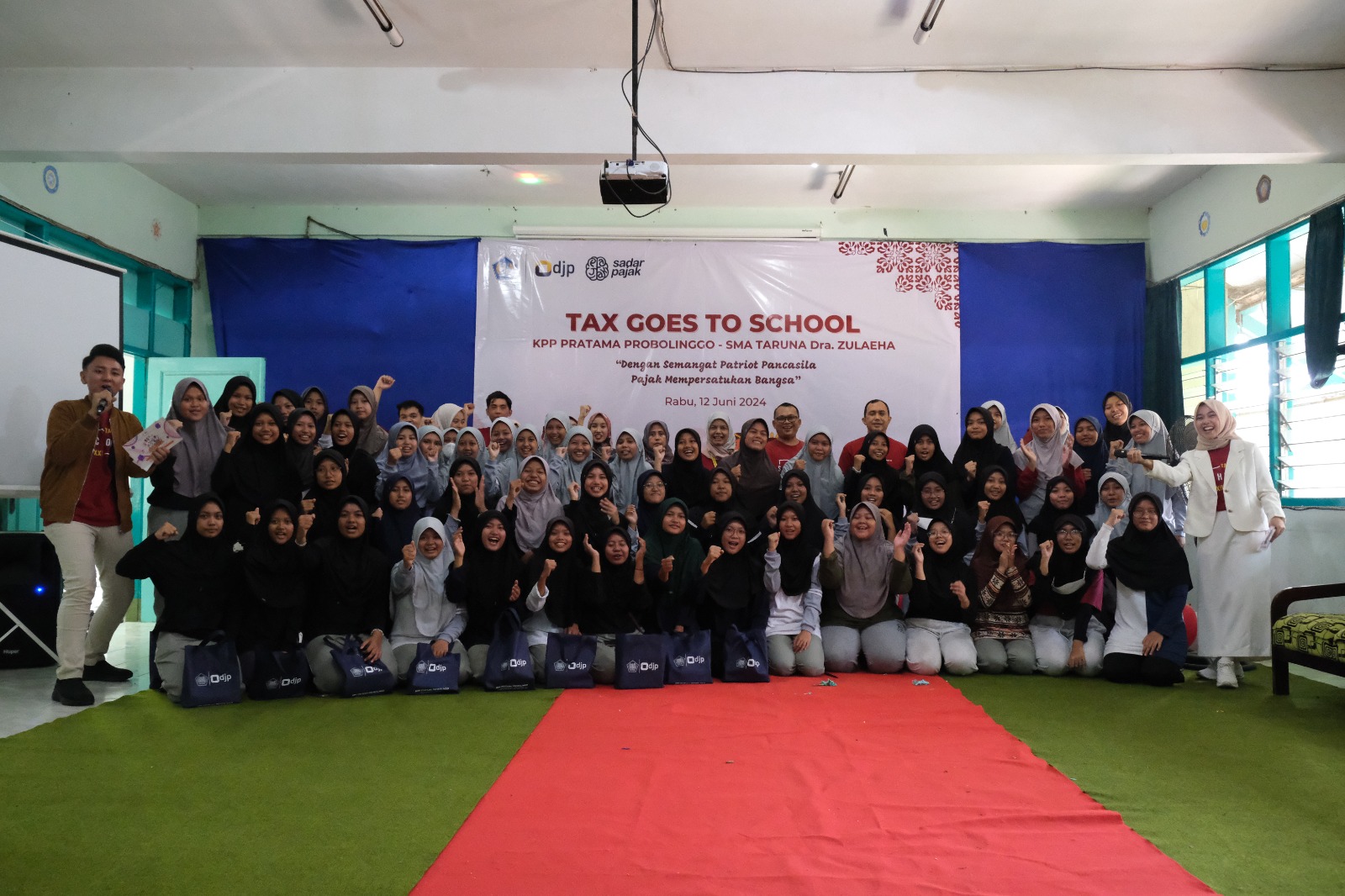 Kantor Pelayanan Pratama (KPP) Pratama Probolinggo tanamkan sadar pajak dan edukasi fungsi krusial pajak terhadap pembangunan negara kepada siswa-siswi Sekolah Menengah Atas (SMA) Taruna Dra. Zulaeha dalam kegiatan Tax Goes To School (TGTS). TGTS tersebut mengusung tema “Dengan Semangat Patriot Pancasila, Pajak Mempersatukan Bangsa” dan bertempat di Aula SMA Taruna Dra. Zulaeha, Jl. Raya Leces Nomor A-3, Leces, Kabupaten Probolinggo (Rabu, 12/6).