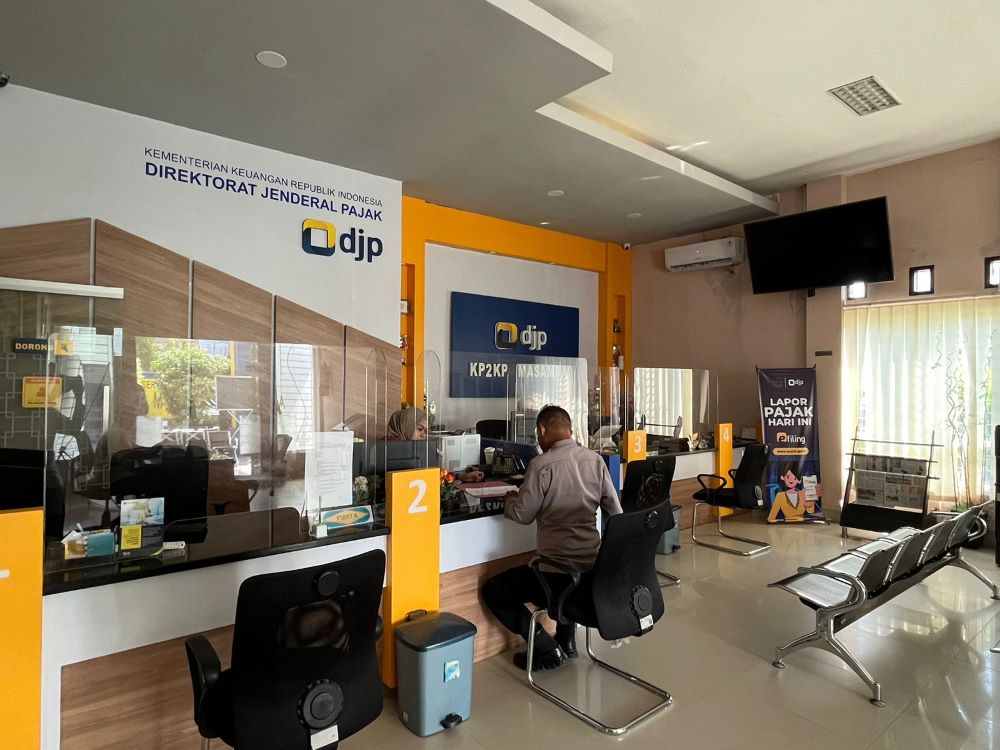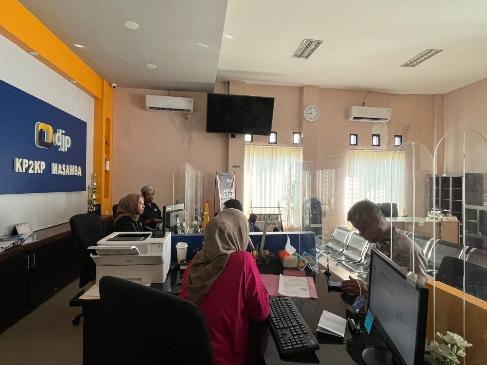 Kantor Pelayanan, Penyuluhan, dan Konsultasi Perpajakan (KP2KP) Masamba masih mendapati banyak Wajib Pajak Orang Pribadi yang belum melaporkan SPT Tahunan Tahun Pajak 2022. KP2KP Masamba masih dipadati oleh wajib pajak karyawan dan wiraswasta yang ikut antre di Tempat Pelayanan Terpadu (TPT) KP2KP Masamba (Kamis, 13/4).