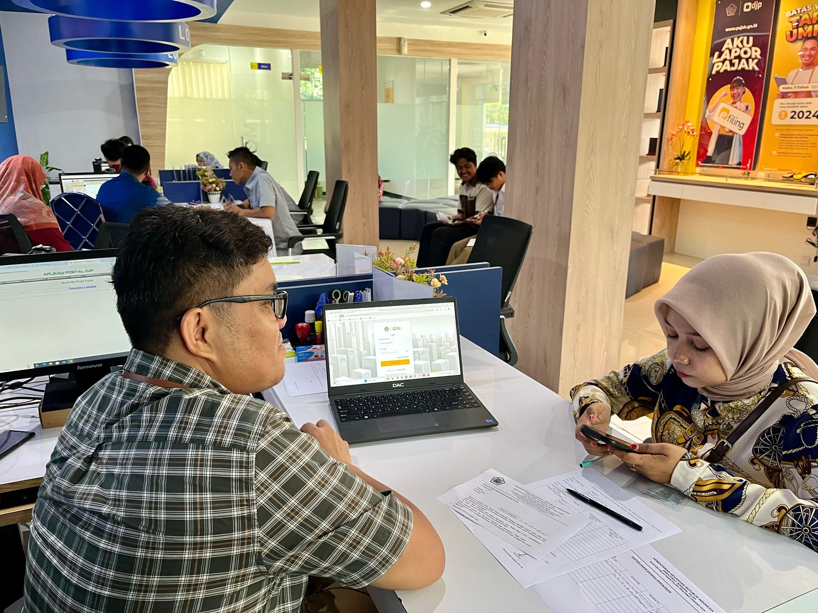 "Pelaporan SPT Tahunan Tahun Pajak 2024 masih dapat dilakukan melalui djponline.pajak.go.id. Untuk mengakses akun DJP Online, pastikan email dan nomor handphone wajib pajak sudah sesuai, karena kini telah diterapkan sistem Multi-Factor Authentication (MFA) guna meningkatkan keamanan akses," ujar petugas saat melakukan asistensi pelaporan SPT Tahunan.