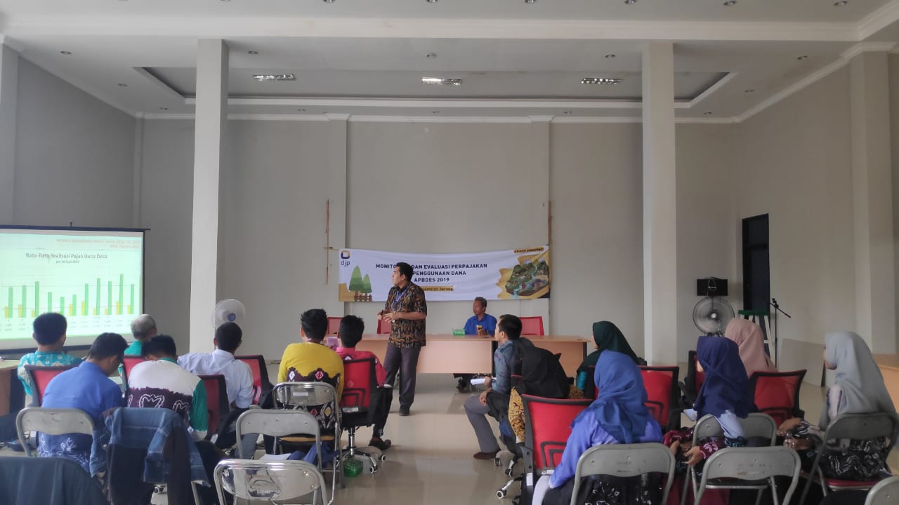 KP2KP Pelaihari menjalin kerjasama dengan Kantor Kecamatan Jorong menggelar kegiatan Monitoring dan Evaluasi (Monev) Perpajakan atas Pengelolaan APBDesa Tahun Anggaran 2019 di Aula Kantor Kecamatan Jorong, Kabupaten Tanah Laut, Kalimantan Selatan (Kamis, 31/10).