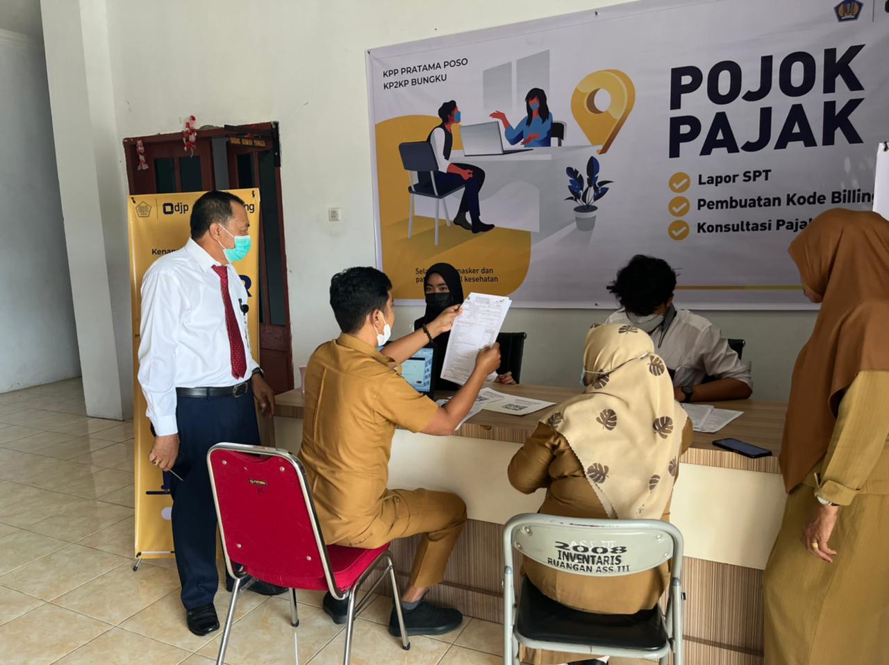 Kantor Pelayanan Penyuluhan dan Konsultasi Perpajakan (KP2KP) Bungku menyelenggarakan kegiatan pojok pajak bertempat di Lobi Kantor Bupati Morowali, Kabupaten Morowali (Senin, 21/2). Kegiatan ini bertujuan untuk memberikan pelayanan yang optimal kepada wajib pajak dalam memenuhi kewajiban pelaporan Surat Pemberitahuan (SPT) Tahunan sehingga kepatuhan pelaporan SPT Tahunan meningkat.