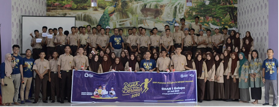 Kantor Pelayanan Pajak (KPP) Pratama Bangka dan Kantor Pelayanan, Penyuluhan, dan Konsultasi Perpajakan (KP2KP) Muntok bekerja sama menggelar kegiatan Pajak Bertutur 2023 secara luring di SMA Negeri 1 Kelapa, Bangka Barat, Kepulauan Bangka Belitung (Kamis, 27/7). Sebanyak 104 siswa-siswi SMA Negeri 1 Kelapa dari kelas XII berpartisipasi mengikuti kegiatan inklusi perpajakan tersebut.