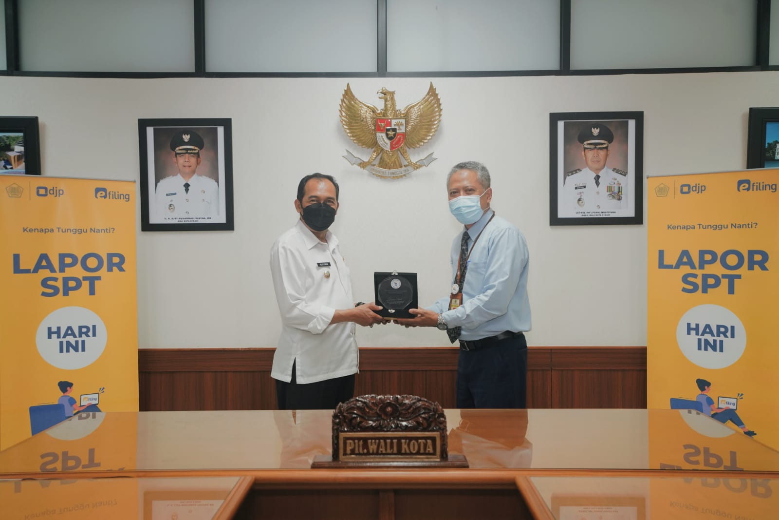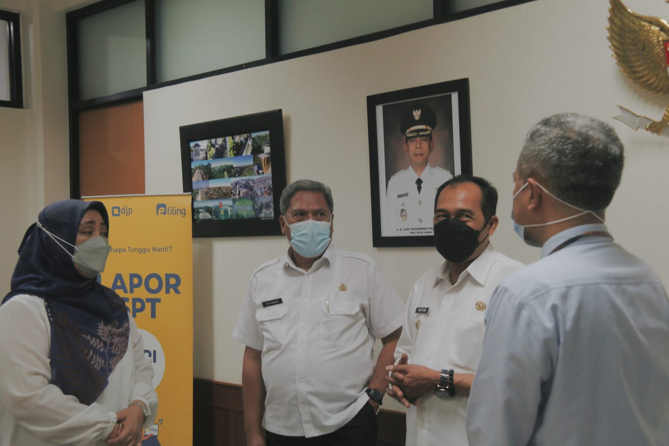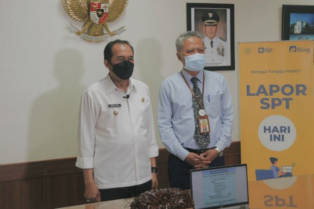 Plt. Wali Kota Cimahi Letkol Inf. (Purn.) Ngatiyana telah lapor SPT Tahunan secara elektronik menggunakan e-Filing. Ngatiyana menunjukkan bukti penerimaan elektronik SPT Tahunannya kepada Kepala KPP Pratama Cimahi Joni Isparianto pada saat kunjungan Pekan Panutan 2022 di ruang rapat walikota Cimahi, Jalan Raden Demang Hardjakusumah nomor 2B (Rabu, 9/3).