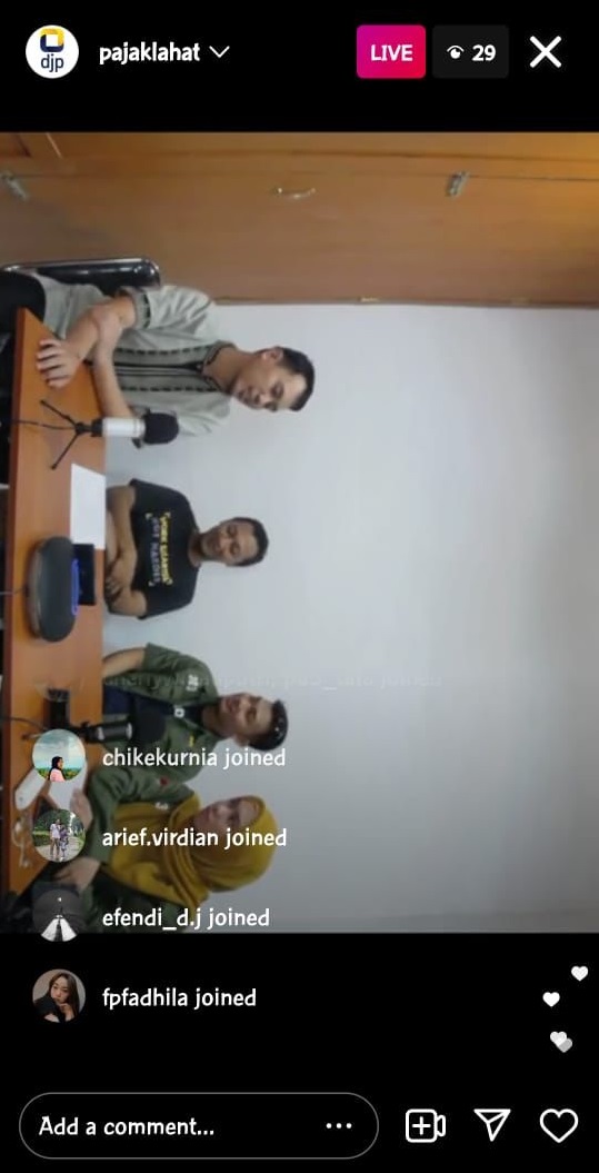 Antusiasnya penonton dapat dilihat dari adanya beberapa pertanyaan yang ditujukan kepada narasumber. Kegiatan melalui media sosial ini dapat membuat Wajib Pajak merasa lebih dekat dan terbukanya wawasan mengenai perpajakan.