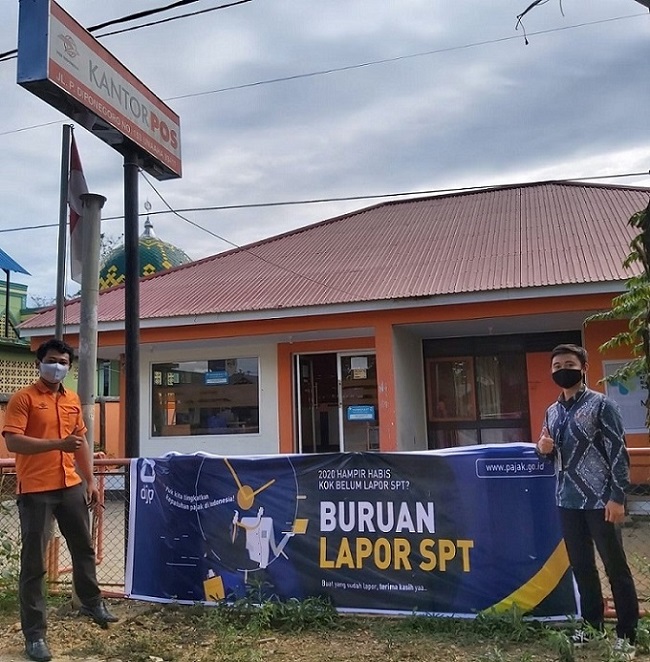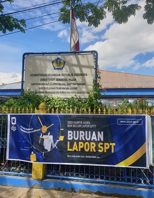Kantor Pelayanan, Penyuluhan, dan Konsultasi Perpajakan (KP2KP) Unaaha melakukan kunjungan kerja ke beberapa kantor pos di Kecamatan Unaaha dan Kecamatan Wawotobi di Kabupaten Konawe guna melakukan audiensi sekaligus pemasangan spanduk informasi terkait pelaporan SPT Tahunan (Selasa, 1/12). Pada kegiatan kunjungan di masa normal baru ini, tim KP2KP Unaaha tetap memperhatikan protokol kesehatan pencegahan Covid-19 yakni para petugas dilengkapi dengan masker dan tidak lupa membawa hand sanitizer.
