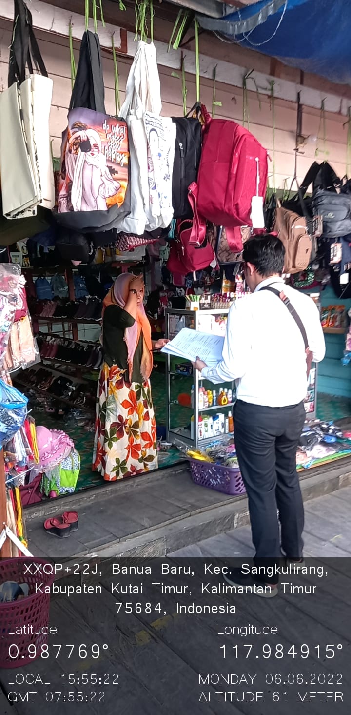 Kegiatan Pengumpulan Data Lapangan (KPDL) pada kesempatan kali ini adalah menyusuri para pedagang di Pasar Sangkulirang. Petugas yang bertugas pada kesempatan kali ini adalah Account Representative KPP Pratama Bontang Hendy Rahmanda didampingi oleh pelaksana Ricky Arikson Sihaloho dan Muhammad Abdul Malik Fajar serta pelaksana KP2KP Sangatta Allez Zion Exaudi Purba.