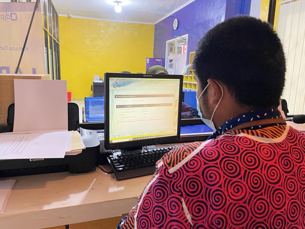 Kantor Pelayanan, Penyuluhan, dan Konsultasi Perpajakan (KP2KP) Sanana memberikan edukasi kepada wajib pajak yang berkunjung ke KP2KP Sanana untuk mendapatkan Surat Keterangan Fiskal (SKF) yang berlangsung di loket TPT KP2KP Sanana, Desa Fogi, Kabupaten Kepulauan Sula (Jumat, 14/10).