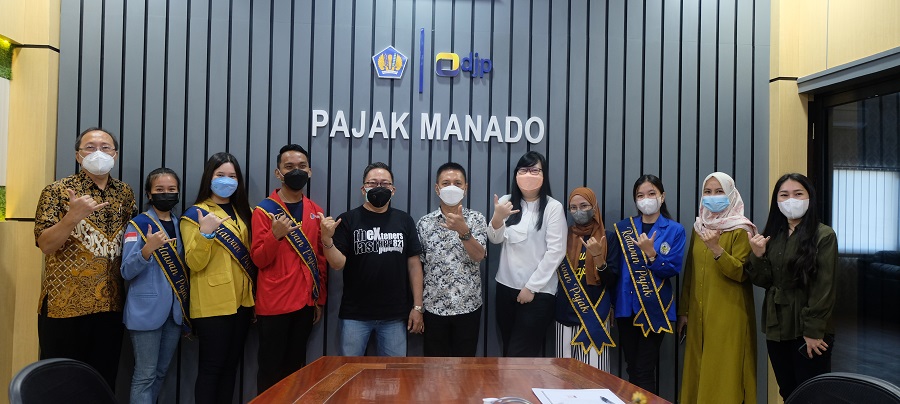 Kantor Pelayanan Pajak (KPP) Pratama Manado melaksanakan pengukuhan 78 Relawan Pajak tahun 2022 secara hybrid di ruang rapat KPP Pratama Manado (Jumat, 11/3). Acara pengukuhan ini dihadiri langsung oleh 5 Relawan Pajak yang didampingi perwakilan Tax Center dari masing-masing perguruan tinggi, sementara 73 relawan pajak lainnya menghadiri kegiatan secara daring.