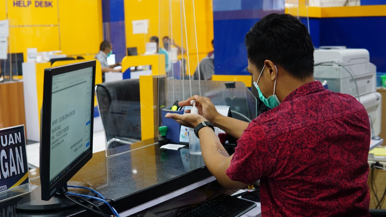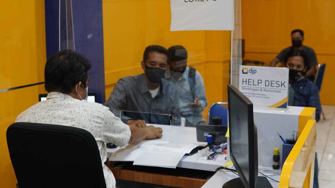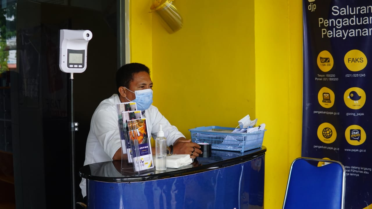 Kantor Pelayanan Pajak (KPP) Pratama Baubau dipadati pengunjung yang mayoritas merupakan para pengurus wajib pajak badan di wilayah Kota Baubau dan sekitarnya (Jumat, 30/4). Membludaknya pengunjung ini sendiri disebabkan oleh bertepatannya batas pelaporan SPT Tahunan Pajak Penghasilan Badan tahun 2020 dengan hari kerja terakhir pada bulan April 2021. Demi menjamin keamanan dan kenyamanan para pengunjung yang datang, KPP Pratama Baubau tetap konsisten untuk selalu menerapkan protokol kesehatan Covid-19 selama pelayanan berlangsung.
