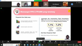 Budi menyampaikan materi perpajakan terkait Kewajiban Pengusaha Kena Pajak antara lain Tata Cara Pemungutan Pajak Pertambahan Nilai (PPN) dan/atau Pajak Penjualan atas Barang Mewah (PPnBM), Tata Cara Penerbitan Faktur Pajak, serta Tata Cara Penghitungan, Pembayaran dan Pelaporan PPN di SPT Masa PPN.