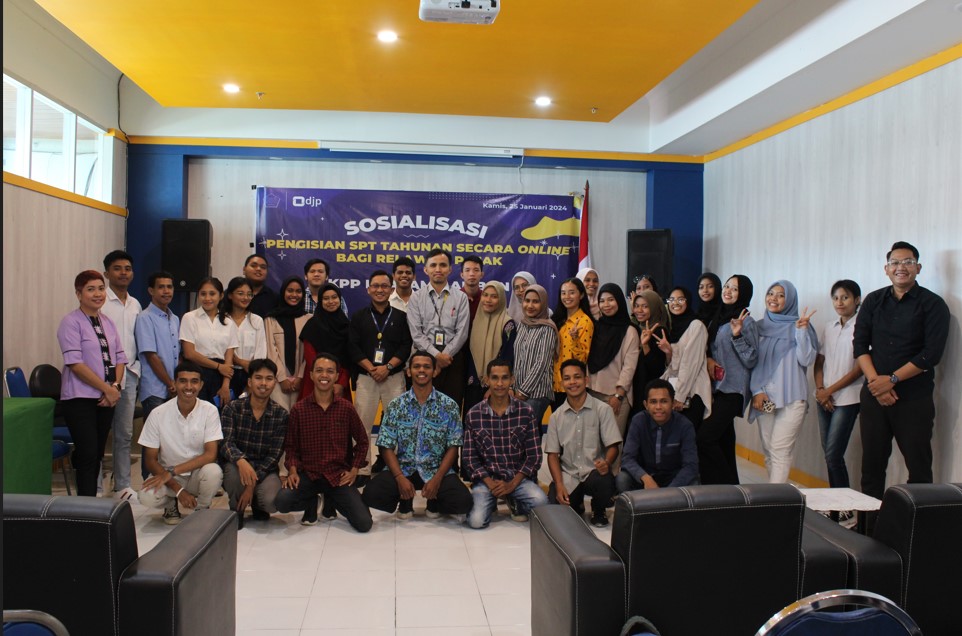 Kantor Pelayanan Pajak (KPP) Pratama Ambon, bertempat di ruangan Siwalima, menyelenggarakan kegiatan sosialisasi pengisian Surat Pemberitahuan (SPT) Tahunan Pajak Penghasilan (PPh) Orang Pribadi (OP) secara daring melalui e-filing kepada mahasiswa relawan pajak dalam rangka meningkatkan kesadaran pelaporan SPT bagi Wajib Pajak (Kamis, 26/1).