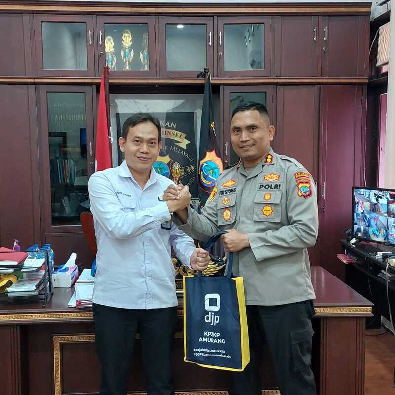 Kantor Pelayanan Penyuluhan dan Konsultasi Perpajakan (KP2KP) Amurang melakukan kunjungan kerja ke Kantor Kepolisian Resor (Polres) Minahasa Selatan, Kabupaten Minahasa Selatan, Sulawesi Utara (Senin, 3/7). Tujuan kunjungan kerja kali ini adalah untuk mempererat silaturahmi dan koordinasi antar instansi pemerintah dalam rangka optimalisasi pengumpulan penerimaan negara sektor perpajakan.