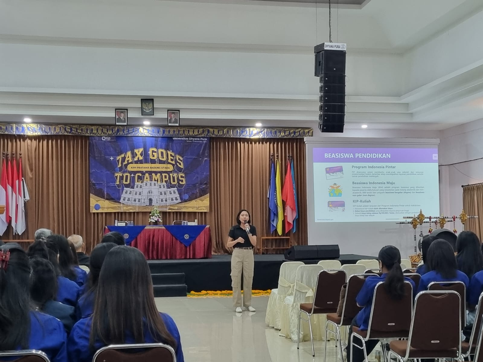 Menghadirkan 120 mahasiswa semester 1 dan 3 Jurusan Akuntansi Fakultas Bisnis, Pariwisata, Pendidikan, dan Humaniora (FBPPH). Acara ini diawali dengan sambutan Wakil Rektor 3 Universitas Dhyana Pura, I Wayan Ruspendi Junaedi, S.E, M.A dilanjutkan dengan sambutan dari Kepala Seksi Pelayanan KPP Pratama Badung Utara Ludi Fitrian.