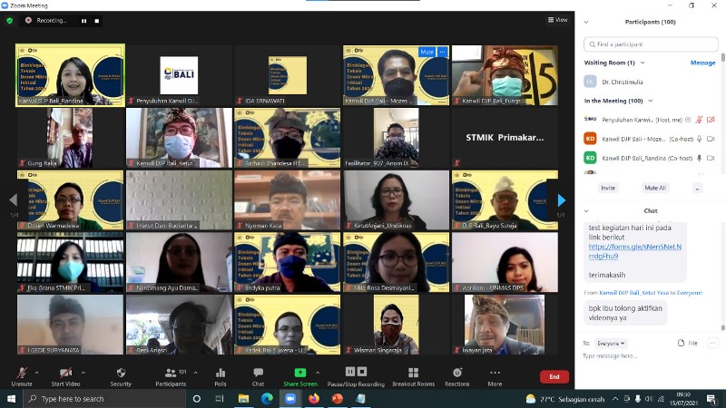 Kantor Wilayah Direktorat Jenderal Pajak Bali (Kanwil DJP Bali) mengadakan Bimbingan Teknis Dosen Mitra Inklusi Tahun 2021 melalu media zoom di Bali (Kamis, 15/7). Kegiatan ini dihadiri oleh 33 Perguruan Tinggi di Bali yang telah menjalin kerja sama terkait Inklusi Kesadaran Pajak.