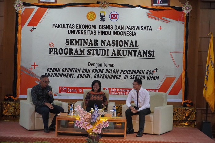 Kantor Wilayah (Kanwil) Direktorat Jenderal Pajak (DJP) Bali bekerja sama dengan Universitas Hindu Indonesia (UNHI) Denpasar menyelenggarakan acara Seminar Nasional Akuntansi Program Studi Akuntansi. Kegiatan ini dilaksanakan secara luring di Aula Indraprasta Rektorat Lantai III Universitas Hindu Indonesia Denpasar (Senin, 15/5).