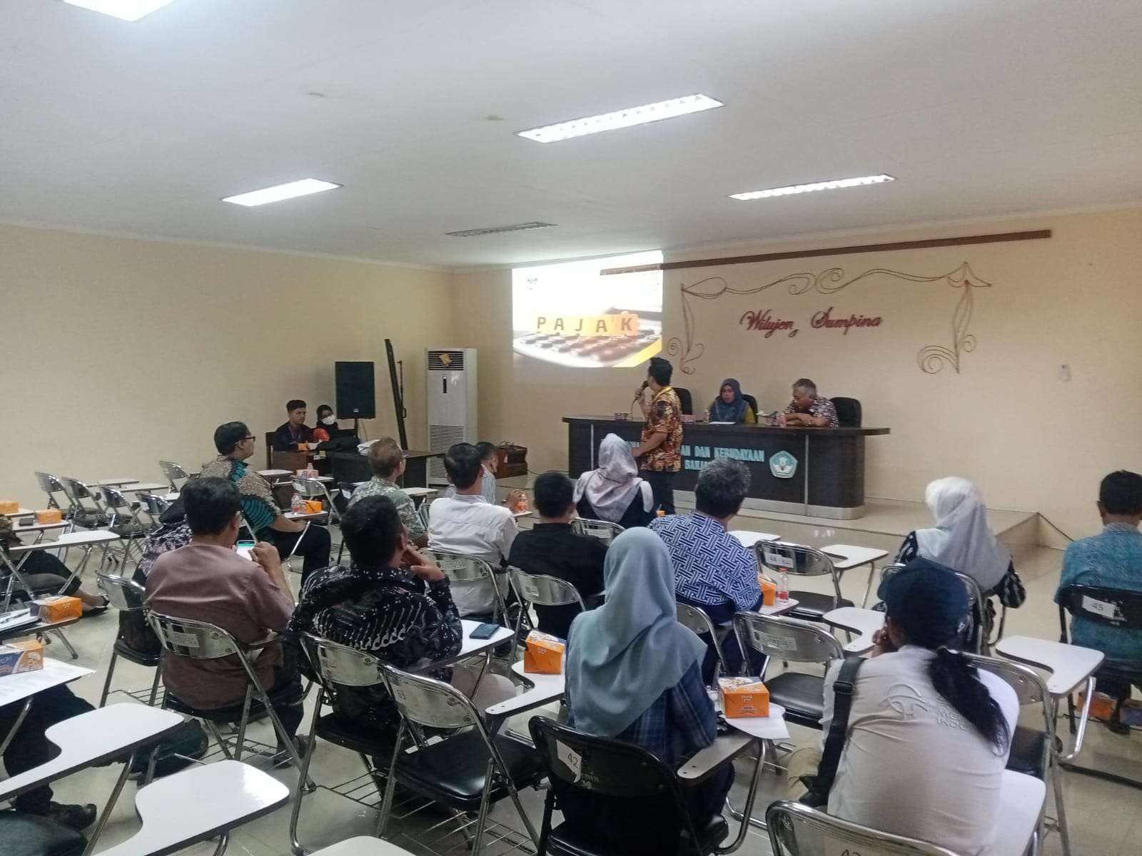 Dalam sambutannya Slamet menjelaskan, “Bapak-ibu tentunya sudah menyadari bahwa pajak itu sangat berperan bagi penyelenggaraan kehidupan berbangsa dan bernegara. Jadi, pajak itu dari kita untuk kita. Dalam penerimaan negara, pajak itu memiliki kontribusi sebesar 78%. Sehingga bapak ibu pengurus lembaga PKBM dan LKP meskipun berorientasi sebagai lembaga non profit tapi tetap harus menjalankan kewajiban lapor pajak salah satunya,” jelasnya.