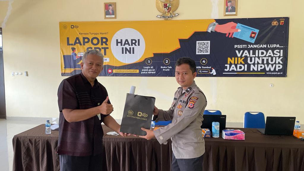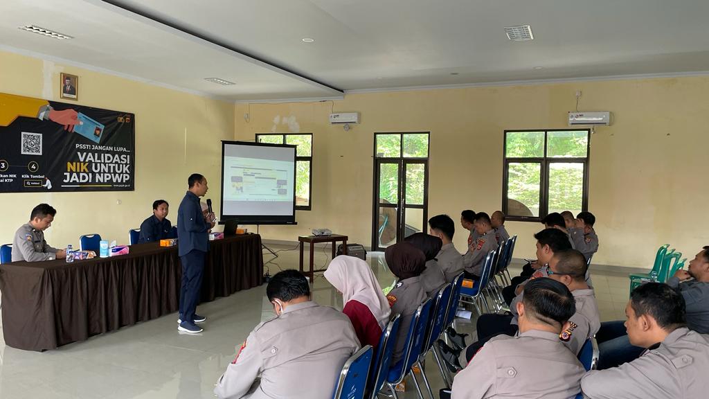Kantor Pelayanan Penyuluhan dan Konsultasi (KP2KP) Banjar menggelar edukasi dan bimbingan pemadanan NIK-NPWP kepada 30 orang anggota Polres Kota Banjar (Kamis, 16/3). Bertempat di aula Polres Kota Banjar, kegiatan tersebut berlangsung selama 90 menit dibuka dengan sambutan Kepala KP2KP Banjar Slamet Rijadi Sugiharto dan dilanjutkan pemaparan materi oleh penyuluh pajak.