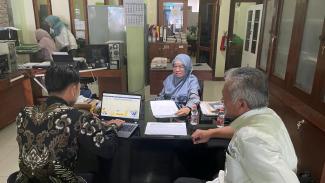 Kepala Kantor Pelayanan, Penyuluhan, dan Konsultasi Perpajakan (KP2KP) Banjar Slamet Rijadi Sugiharto beserta tim memperkenalkan fitur e-PBK atau layanan permohonan pemindahbukuan secara online kepada Notaris dan PPAT Agustiana Heradi, di Kota Banjar (Senin, 26/6).