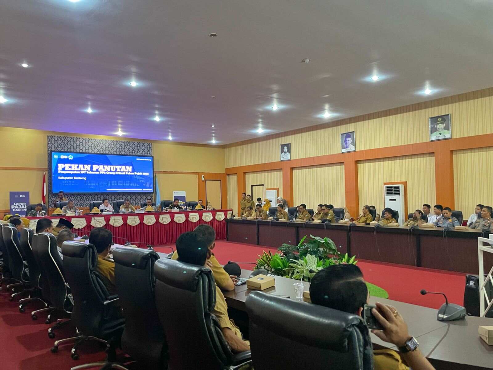 Kantor Pelayanan Pajak (KPP) Pratama Bantaeng bersama Pemerintah Daerah Kabupaten Bantaeng menyelenggarakan kegiatan Pekan Panutan Penyampaian Pelaporan Surat Pemberitahuan Tahunan (SPT) Orang Pribadi Tahun Pajak 2022. Kegiatan ini diselenggarakan bersama di Ruang Pola Kantor Bupati Bantaeng (Senin, 30/1). Kegiatan tersebut diikuti oleh Bupati Bantaeng yang diwakili oleh Sekda Bantaeng Abdul Wahab dan jajaran Forum Komunikasi Pimpinan Daerah (Forkopimda) Kabupaten Bantaeng.