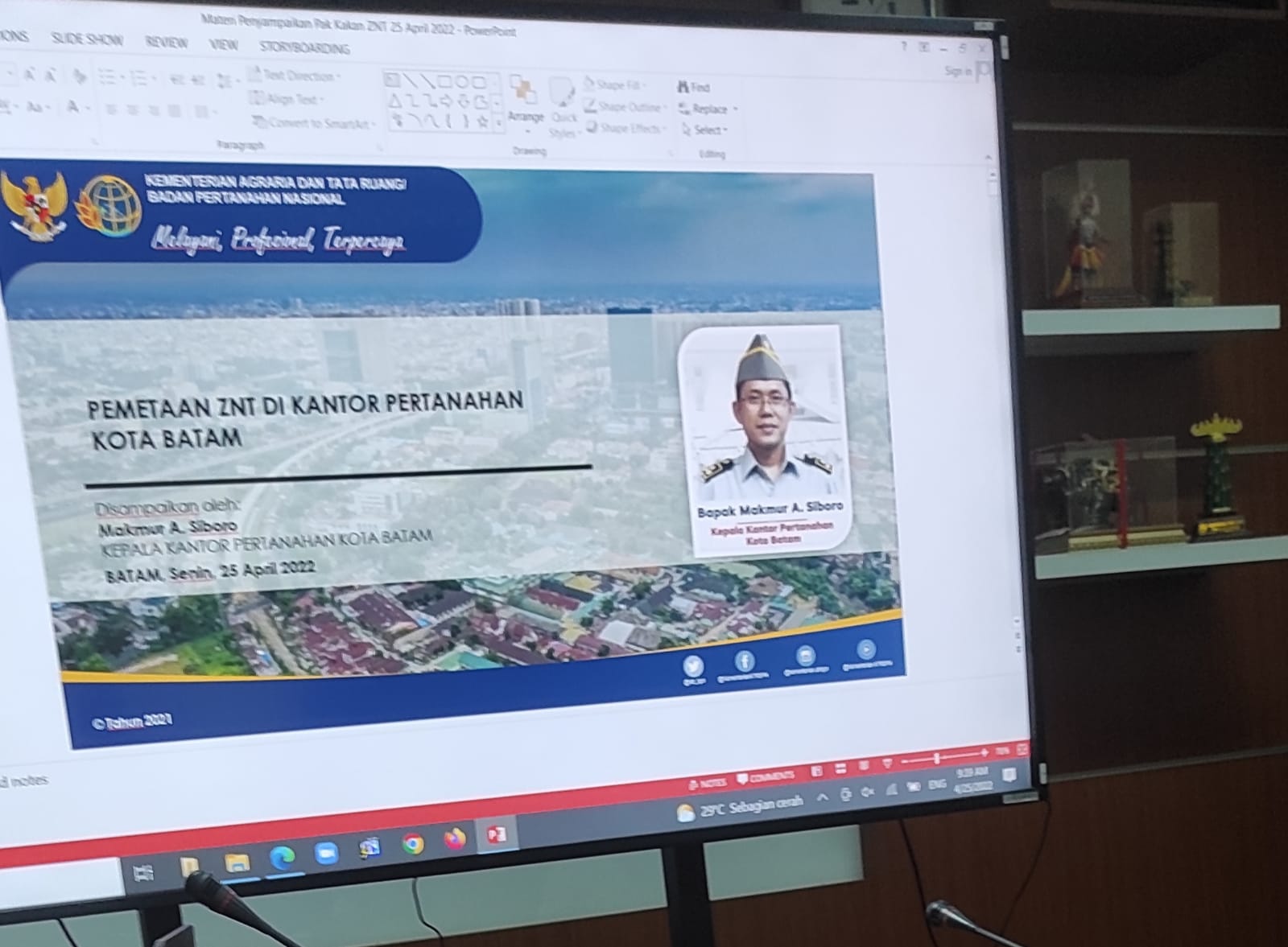 Kantor Pelayanan Pajak (KPP) Pratama Batam Selatan menghadiri rapat penentuan Zona Nilai Tanah (ZNT) Kota Batam Tahun 2022 yang diselenggarakan Badan Pendapatan Daerah (Bapenda) Kota Batam (Senin, 25/4). Kehadiran tim dari KPP Pratama Batam Selatan ini merupakan sinergi antar instansi Pemerintah Pusat dan Pemerintah Daerah terkait penyamaan ZNT agar diperoleh Nilai Tunggal Tanah.