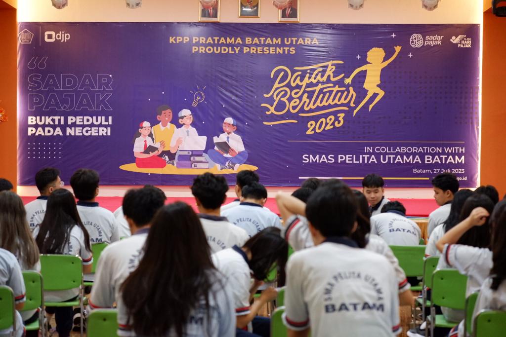 Kantor Pelayanan Pajak (KPP) Pratama Batam Utara berkolaborasi dengan SMAS Pelita Utama Batam menggelar Pajak Bertutur dengan tema "Sadar Pajak, Bukti Peduli pada Negeri" di Kota Batam, Kepulauan Riau (Kamis, 27/7). Pajak Bertutur yang dilaksanakan untuk memberikan pengetahuan tentang pentingnya pajak bagi pembangunan negara ini diikuti oleh 90 siswa.