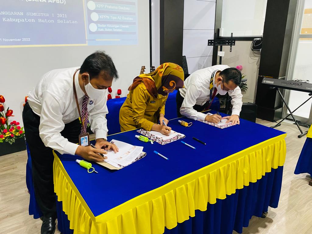 Penandatanganan berita acara rekonsiliasi dilakukan oleh Tangguh Dewantara selaku Kepala KPP Pratama Baubau, Hariyanto selaku Kepala KPPN Baubau, dan Plt. Kepala BKAD Kabupaten Buton Selatan. Berita acara rekonsiliasi yang telah ditandatangani dijadikan sebagai laporan kinerja pemerintah daerah dalam mendukung optimalisasi penerimaan negara dan pemulihan ekonomi nasional.