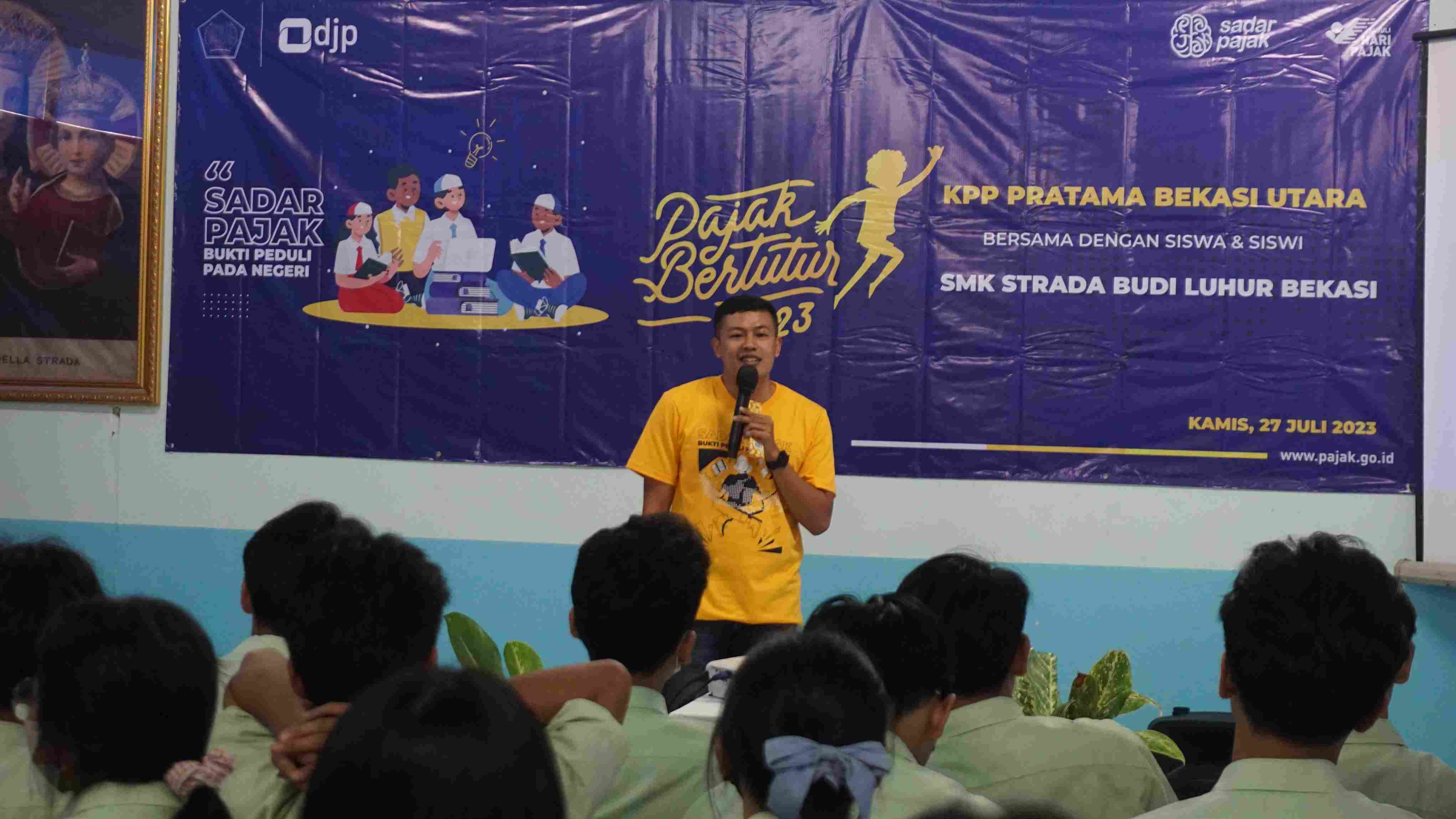 Kantor Pelayanan Pajak (KPP) Pratama Bekasi Utara mendapatkan kesempatan untuk memberikan edukasi perpajakan kepada Sekolah Menengah Kejuruan (SMK) Strada Budi Luhur Bekasi. Kegiatan dilakukan bertempat di Aula SMK Strada Budi Luhur Bekasi Jalan Insinyur H. Juanda No.164, Margahayu, Bekasi Timur (Kamis, 27/7).