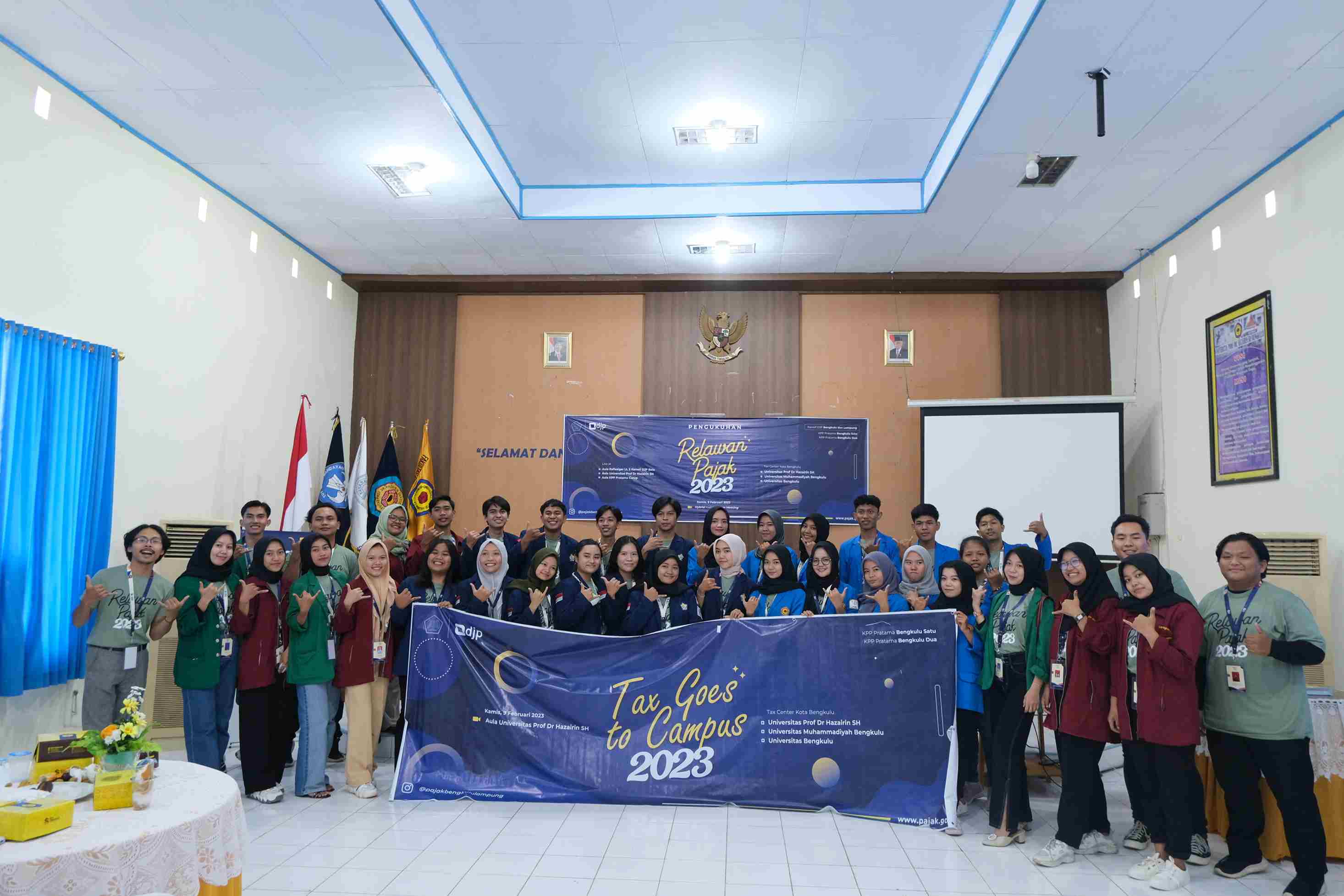 Kantor Pelayanan Pajak (KPP) Pratama Bengkulu Satu bersama dengan KPP Pratama Bengkulu Dua menyelenggarakan acara Tax Goes to Campus (TGTC) secara luring di Aula Unversitas Prof. Dr. Hazairin, SH, Jalan Jend. A. Yani No.1, Kebun Ros, Kec. Teluk Segara, Kota Bengkulu, (Kamis, 9/2).