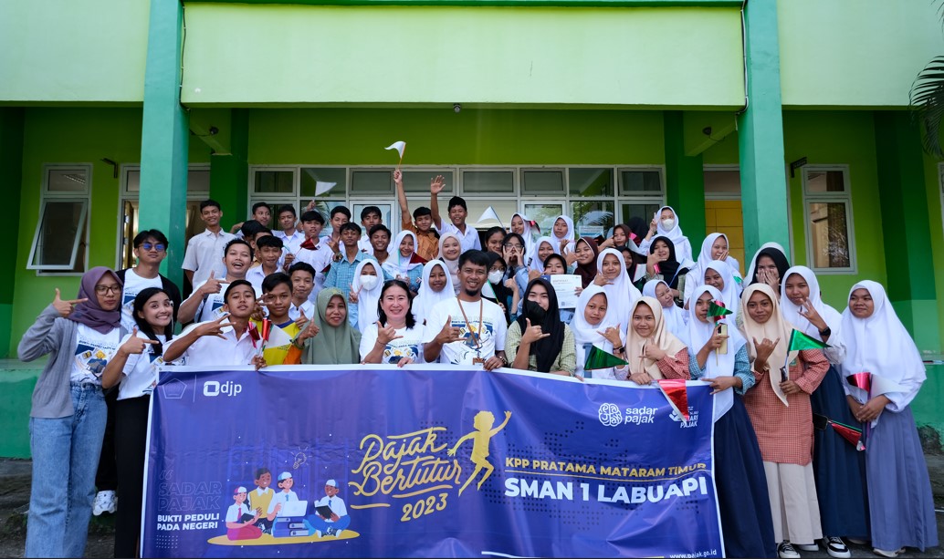 Kantor Pelayanan Pajak (KPP) Pratama Mataram Timur melaksanakan Pajak Bertutur 2023 di SMA Negeri 1 Labuapi, Lombok Barat, Nusa Tenggara Barat (Kamis, 27/7).