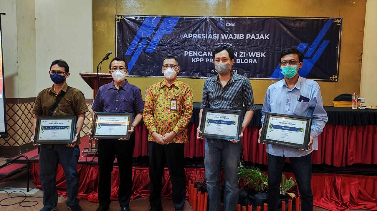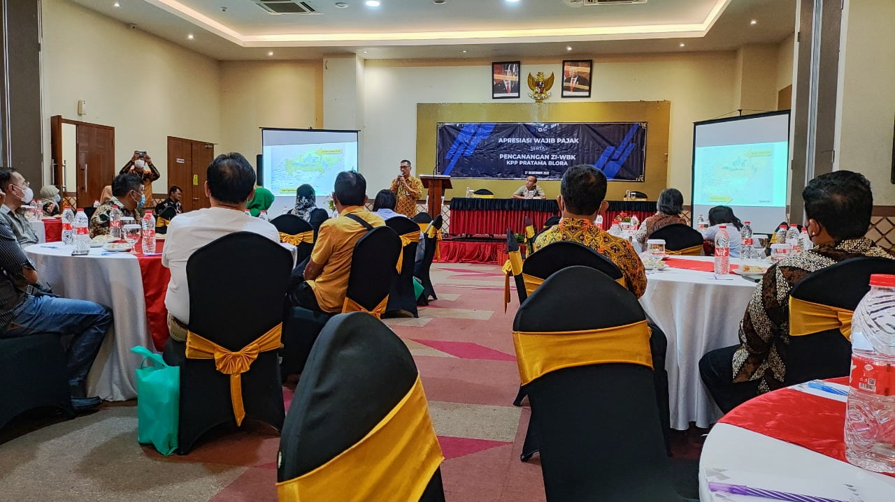 Kantor Pelayanan Pajak (KPP) Pratama Blora bekerja sama dengan Kantor Pelayanan, Penyuluhan, dan Konsultasi Perpajakan (KP2KP) Purwodadi menyelenggarakan acara apresiasi wajib pajak serta pencanangan Zona Integritas - Wilayah Bebas Korupsi (ZI-WBK) di Aula Hotel Front One Purwodadi, Jl. Gajah Mada No.89, Majenang, Kuripan, Purwodadi, Grobogan (Selasa, 27/12).