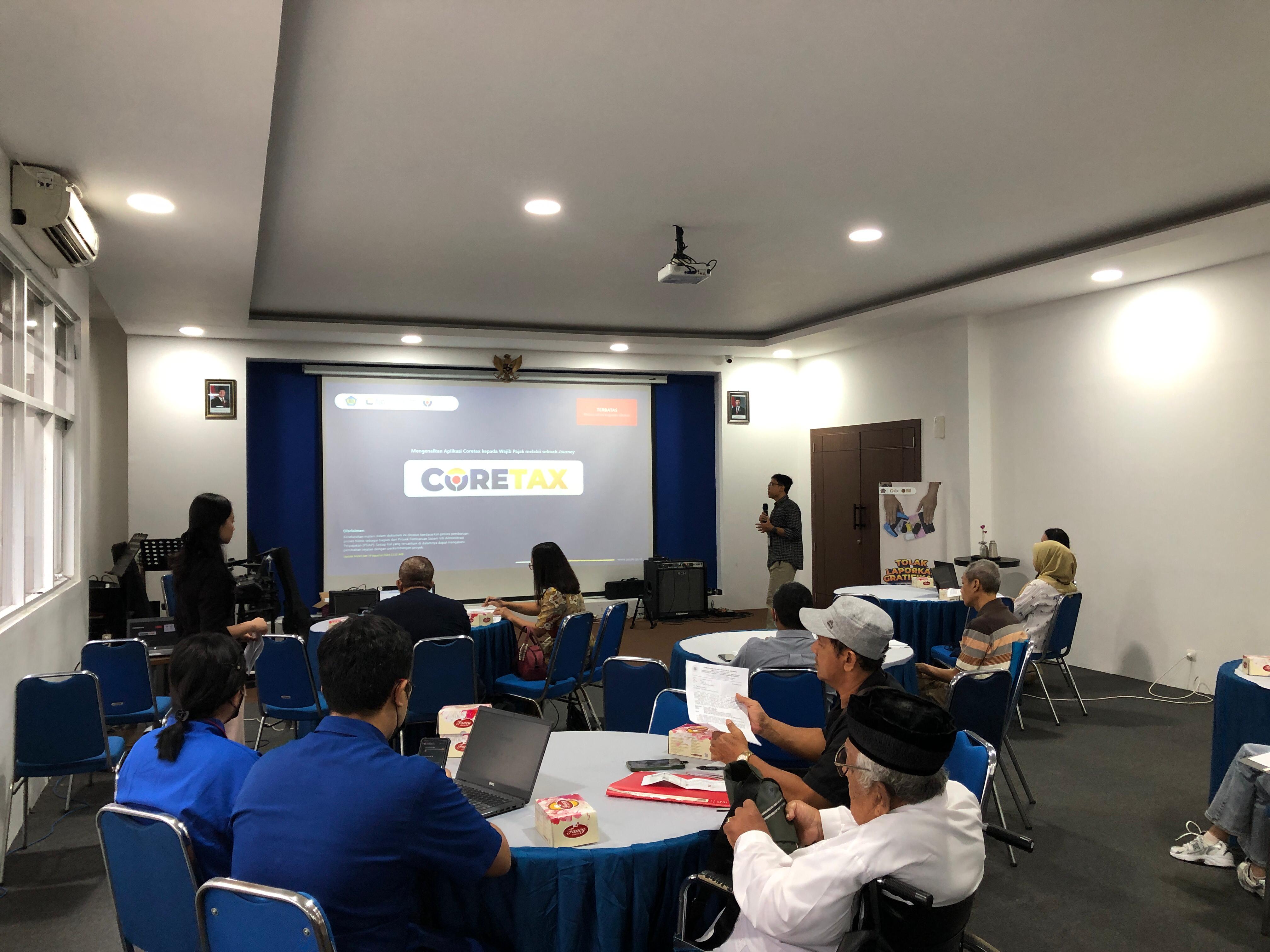Tim penyuluh Kantor Pelayanan Pajak (KPP) Pratama Semarang Candisari gelar kelas pajak Edukasi Coretax kepada Wajib (WP) Badan untuk mengenal aplikasi Coretax pukul 08.30 WIB hingga selesai secara tatap muka di Candisari Studio KPP Pratama Semarang Candisari (Kamis, 12/12).