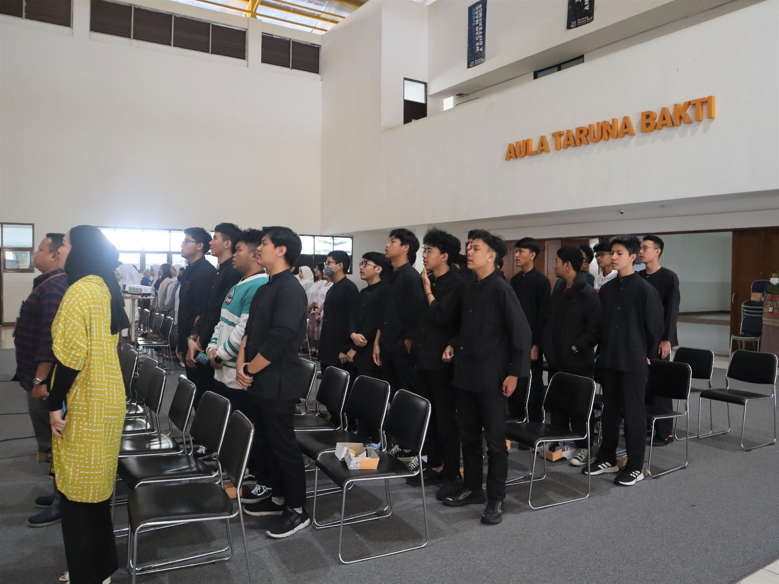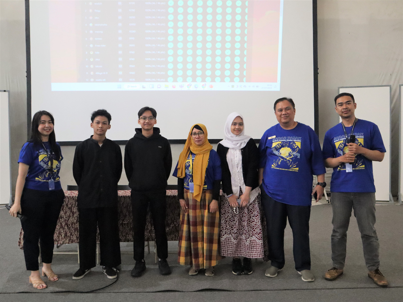 Acara ditutup dengan foto bersama setelah dilakukan pembagian hadiah kepada pemenang kuis dan penyerahan plakat kepada Kepala Sekolah SMA Taruna Bakti.