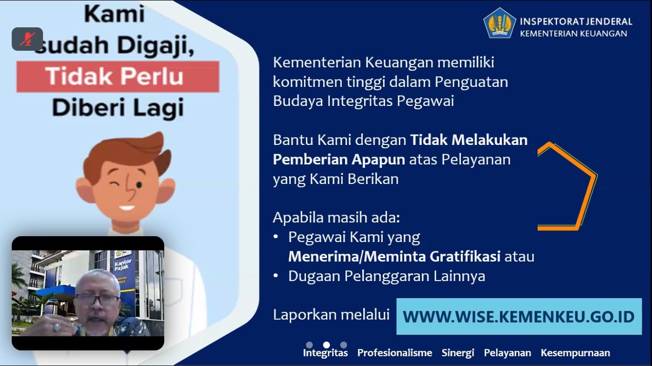 “Kementerian Keuangan, dalam hal ini Direktorat Jenderal Pajak khususnya KPP Pratama Bandung Cicadas memiliki komitmen tinggi dalam penguatan budaya integritas pegawai, bantu kami dengan tidak melakukan pemberian apapun atas pelayanan yang kami berikan,” tutur Joni.