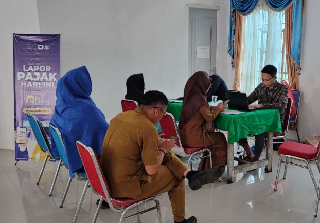 Kantor Pelayanan, Penyuluhan dan Konsultasi Perpajakan (KP2KP) Dabo Singkep bekerja sama dengan Penyuluh Kantor Wilayah Direktorat Jenderal Pajak Kepulauan Riau (Kanwil DJP Kepri) dalam melakukan edukasi perpajakan bagi para bendahara instansi pemerintah Kabupaten Lingga di Aula Bupati Lingga, Kepulauan Riau (Selasa, 31/1).