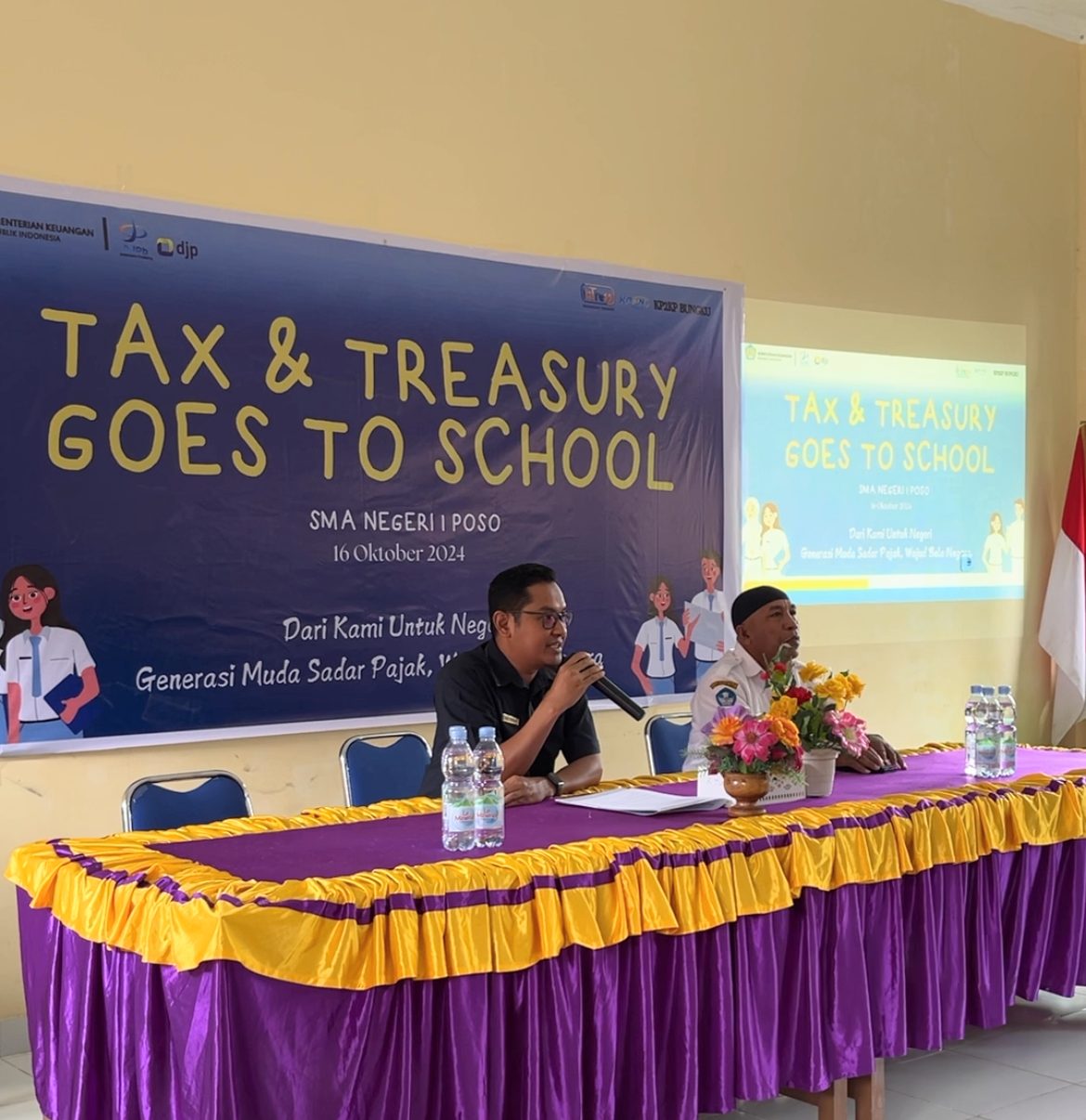 Kantor Pelayanan, Penyuluhan, dan Konsultasi Perpajakan (KP2KP) Bungku, bersama Kantor Pelayanan Perbendaharaan Negara (KPPN) Poso menggelar kegiatan diseminasi manfaat dan pentingnya pajak (Rabu, 16/10). Acara ini bertajuk “Tax & Treasury Goes to School” di SMA Negeri 1 Poso, Sulawesi Tengah. Mengusung tema “Generasi Muda Sadar Pajak, Wujud Bela Negara”, kegiatan tersebut diikuti oleh 30 peserta yang terdiri dari siswa-siswi yang tergabung dalam Organisasi Siswa Intra Sekolah (OSIS).