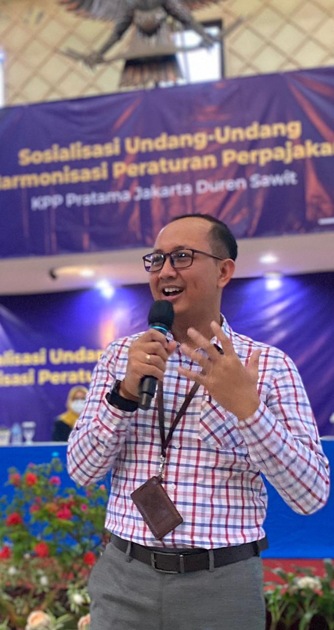 Kantor Pelayanan Pajak (KPP) Pratama Jakarta Duren Sawit menyelenggarakan acara Sosialisasi Undang – Undang Harmonisasi Perpajakan (UU HPP) bagi Wajib Pajak bertempat di Gedung Wira Purusa LVRI Jakarta (Kamis, 2/12). Hadir dalam acara tersebut Kepala Bidang Penyuluhan, Pelayanan, dan Hubungan Masyarakat Kantor Wilayah DJP Jakarta Timur Roos Indrapurwati Yulinapatrianingsih dan perwakilan wajib pajak yang mengikuti sosialisasi.