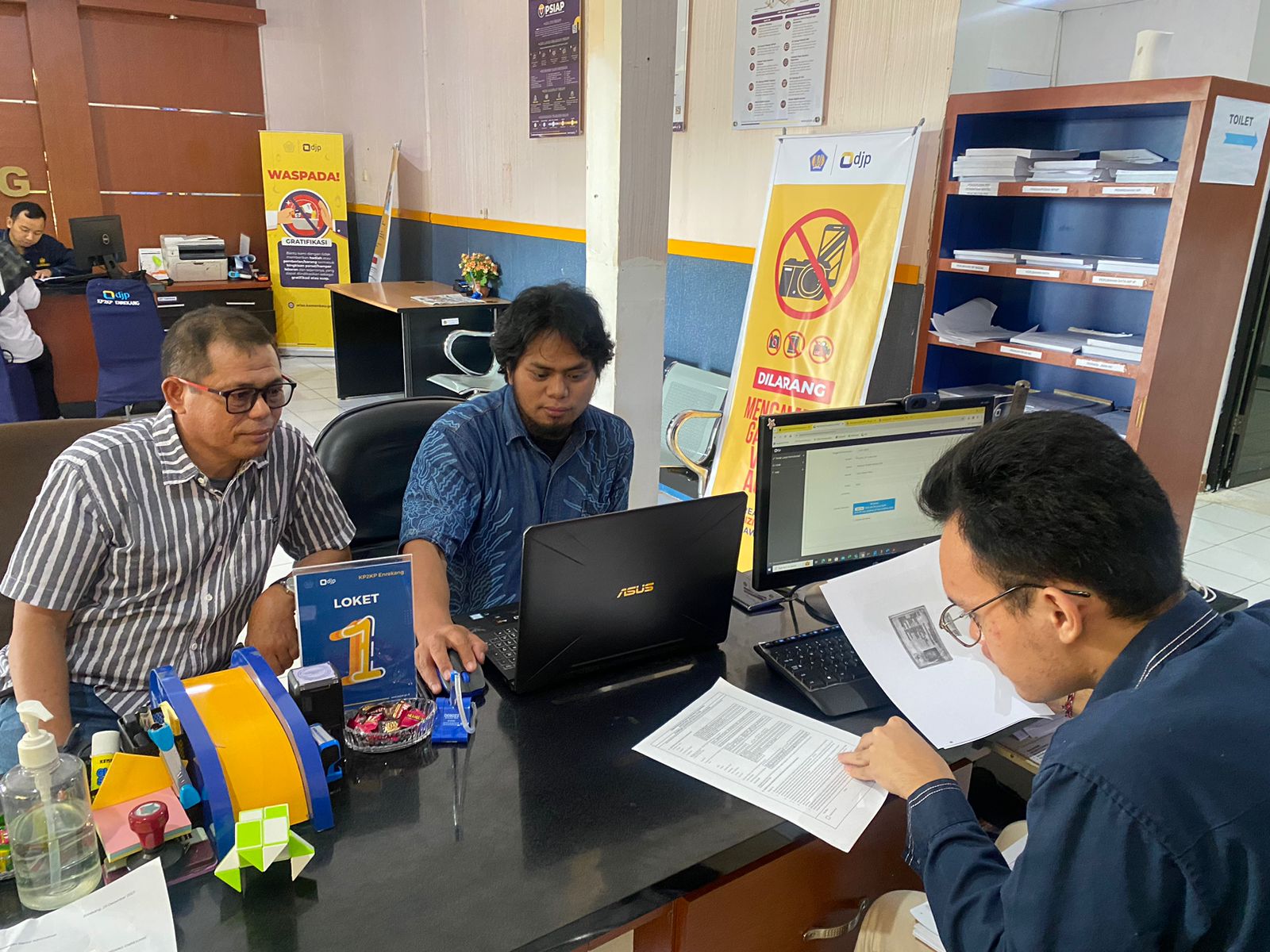Kantor Pelayanan, Penyuluhan, dan Konsultasi Perpajakan (KP2KP) Enrekang menerima kunjungan dari perwakilan pengurus CV MTK yang bergerak di bidang Konsultasi Konstruksi di Tempat Pelayanan Terpadu (TPT) KP2KP Enrekang di Jalan Buttu Juppandang, Enrekang (Rabu, 28/2). Kunjungan ini dilakukan oleh Sudirman selaku Direktur CV MTK yang baru diangkat untuk berkonsultasi terkait pembuatan Sertifikat Elektronik (Sertel).