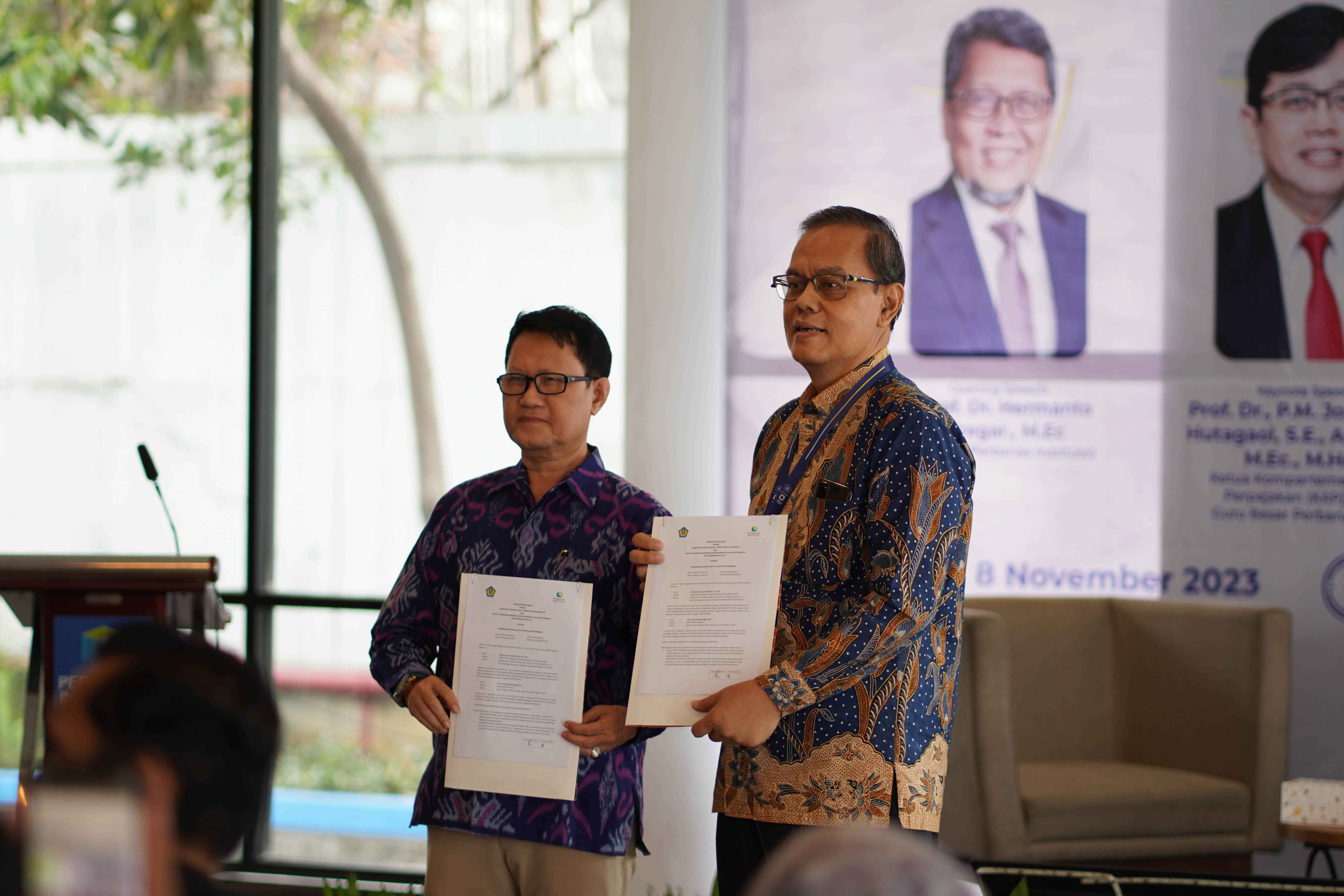 Seremoni penyerahan dokumen antar kedua pihak dilakukan oleh Kepala Bidang Penyuluhan, Pelayanan, dan Hubungan Masyarakat (P2 Humas) Kanwil DJP Jakarta Selatan I Bayu Kaniskha dan Wakil Rektor Bidang Sumber Daya dan Riset, Haryono Umar yang mewakili Rektor IKPIA Perbanas. Dalam sambutannya, Haryono sangat mengapresiasi DJP atas terjalinnya kerja sama ini.
