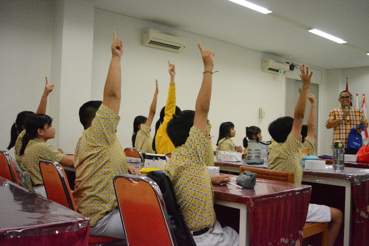 “Saat sudah bekerja dan memiliki penghasilan, maka kita memiliki kewajiban untuk membayar pajak. Karena adik-adik masih sekolah, maka yang bisa dilakukan untuk berperan serta membangun Indonesia melalui belajar dengan giat dan berlomba-lomba mencetak prestasi,” tambah Didi. Siswa-siswi nampak antusias dengan mengajukan pertanyaan-pertanyaan seputar materi yang disampaikan dan berebut untuk menjawab pertanyaan dari Didi.
