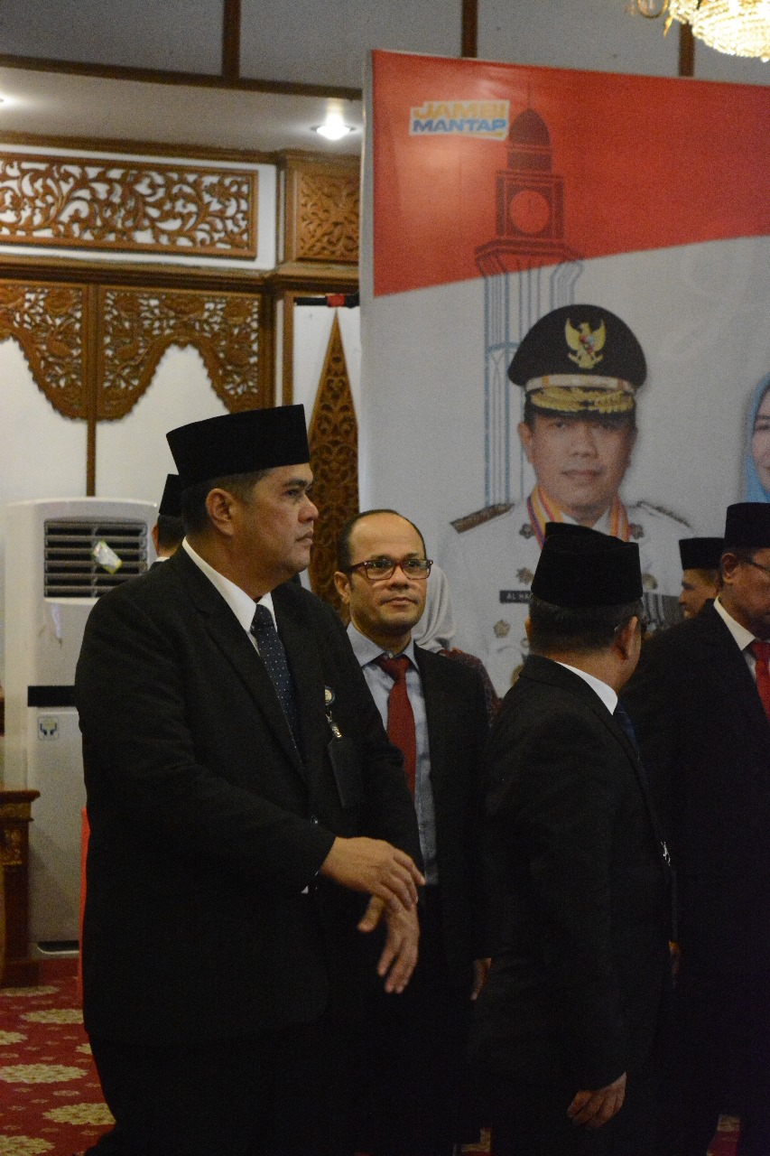 "Pada pagi hari ini saya sudah melantik Direktur Utama Bank Jambi yang baru, di mana memang akhir masa jabatan dirut yang lama berakhir Maret ini. Oleh karena itu Bank Jambi membutuhkan direktur utama yang defenitif supaya bisa bekerja lebih maksimal kedepannya,” ujar Al Haris usai kegiatan pelantikan